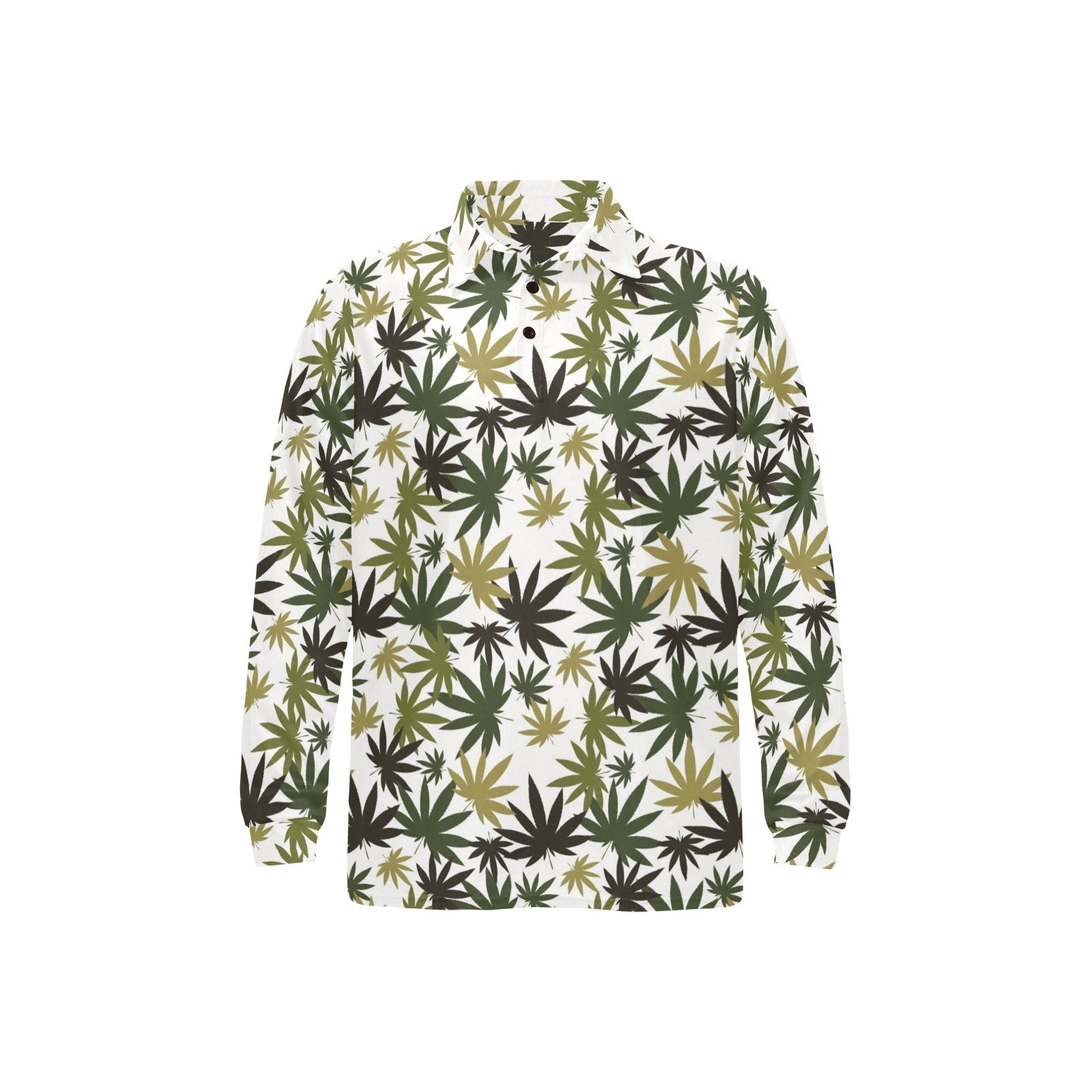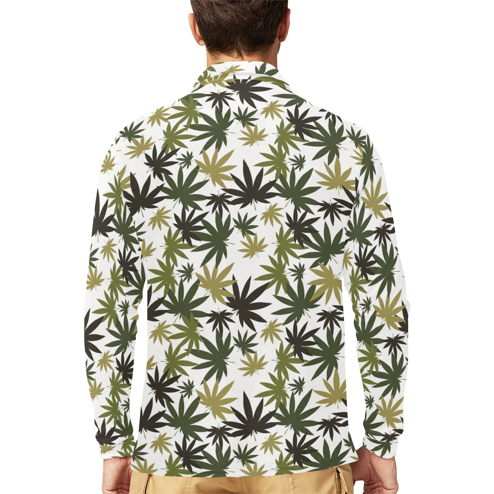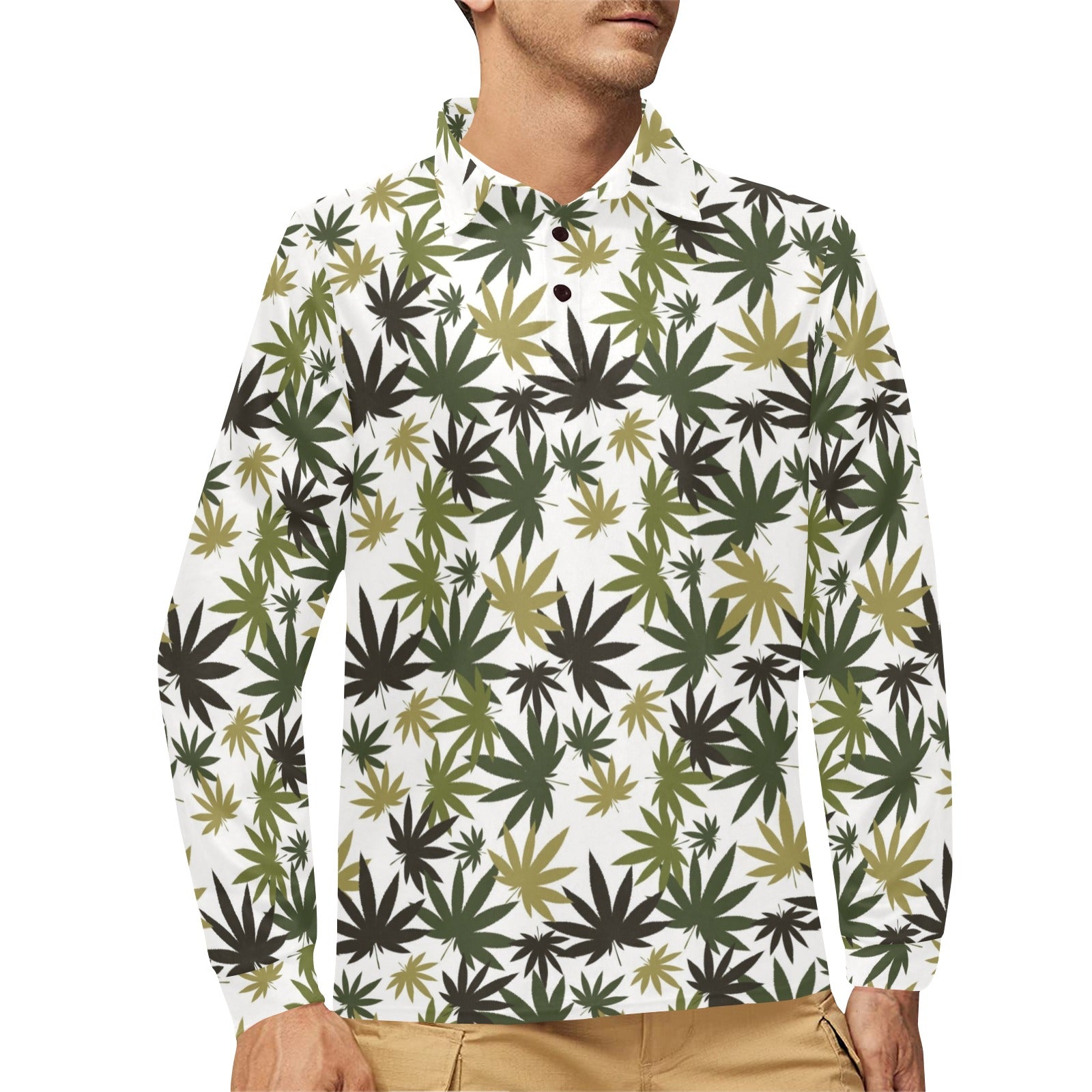 Canabis Marijuana Weed Pattern Print Design 05 Men's Long Sleeve Polo Shirt