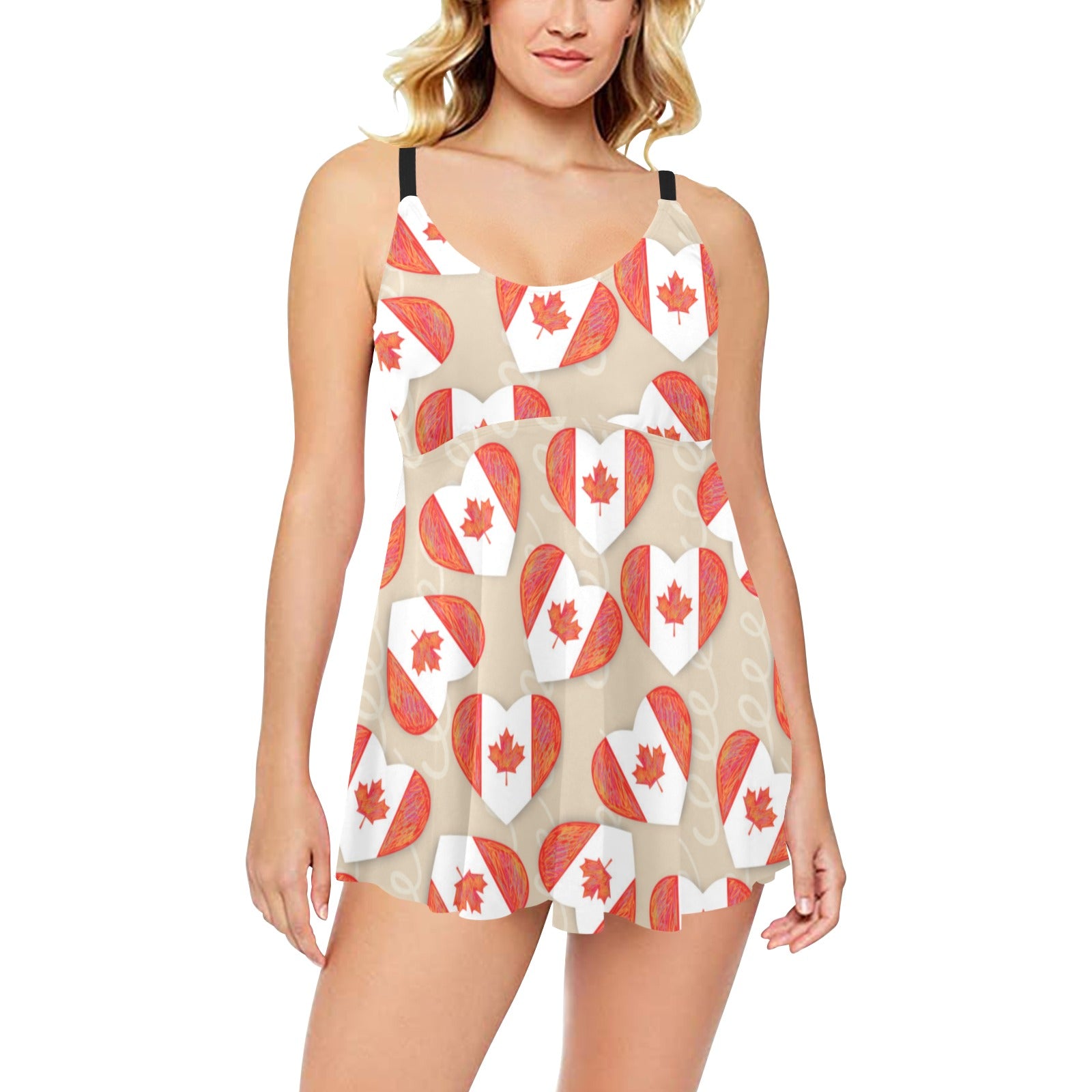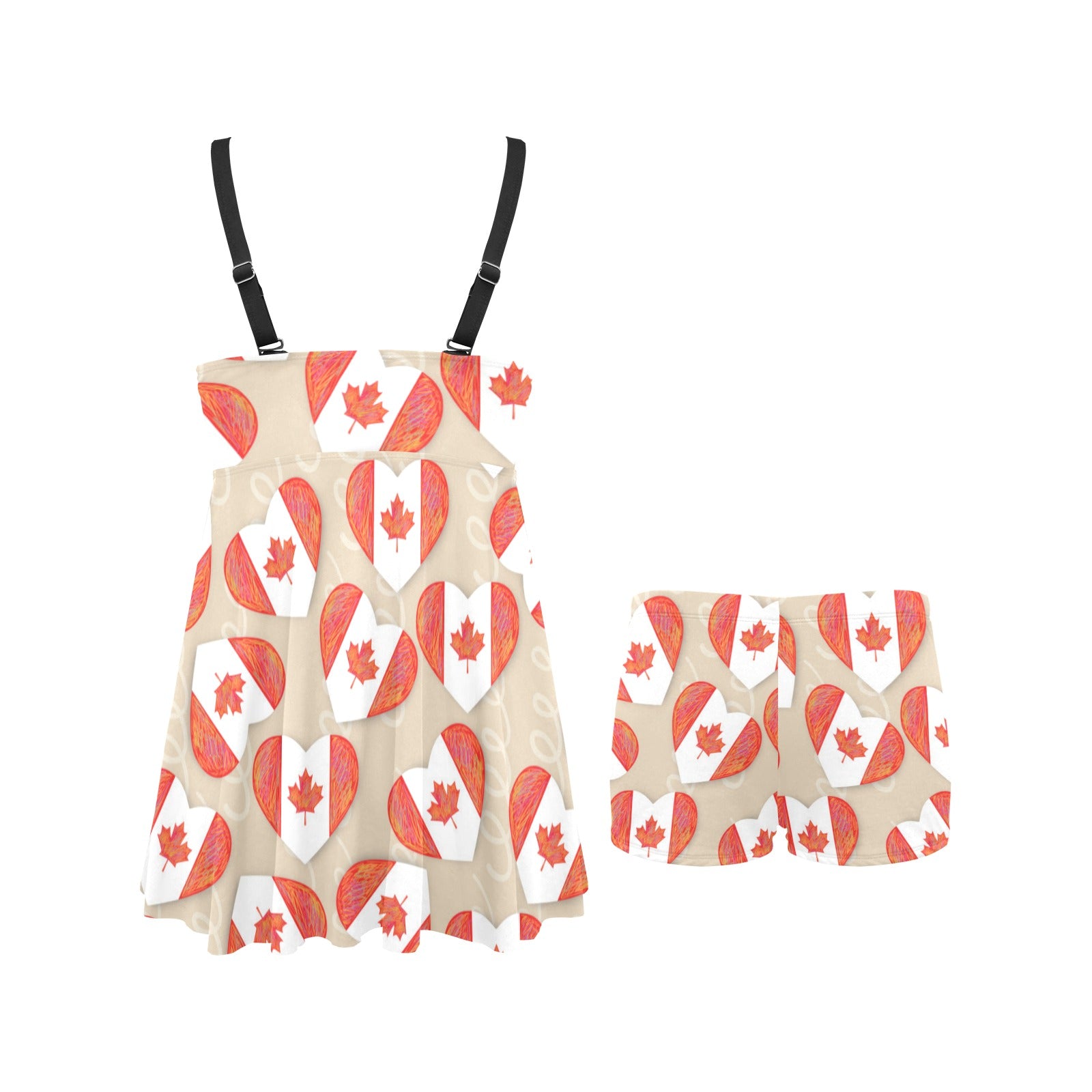 Canada Pattern Print Design 01 Chest Sexy Pleated Two Piece Swim Dress