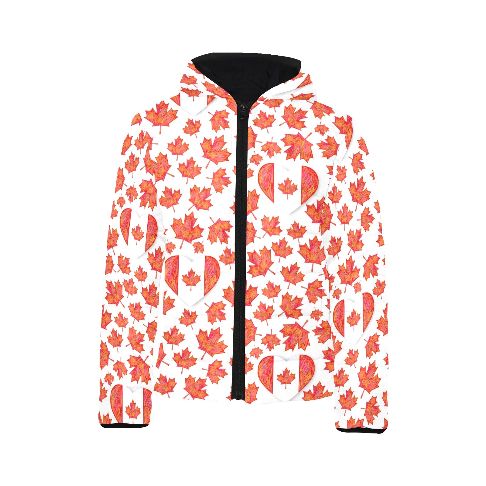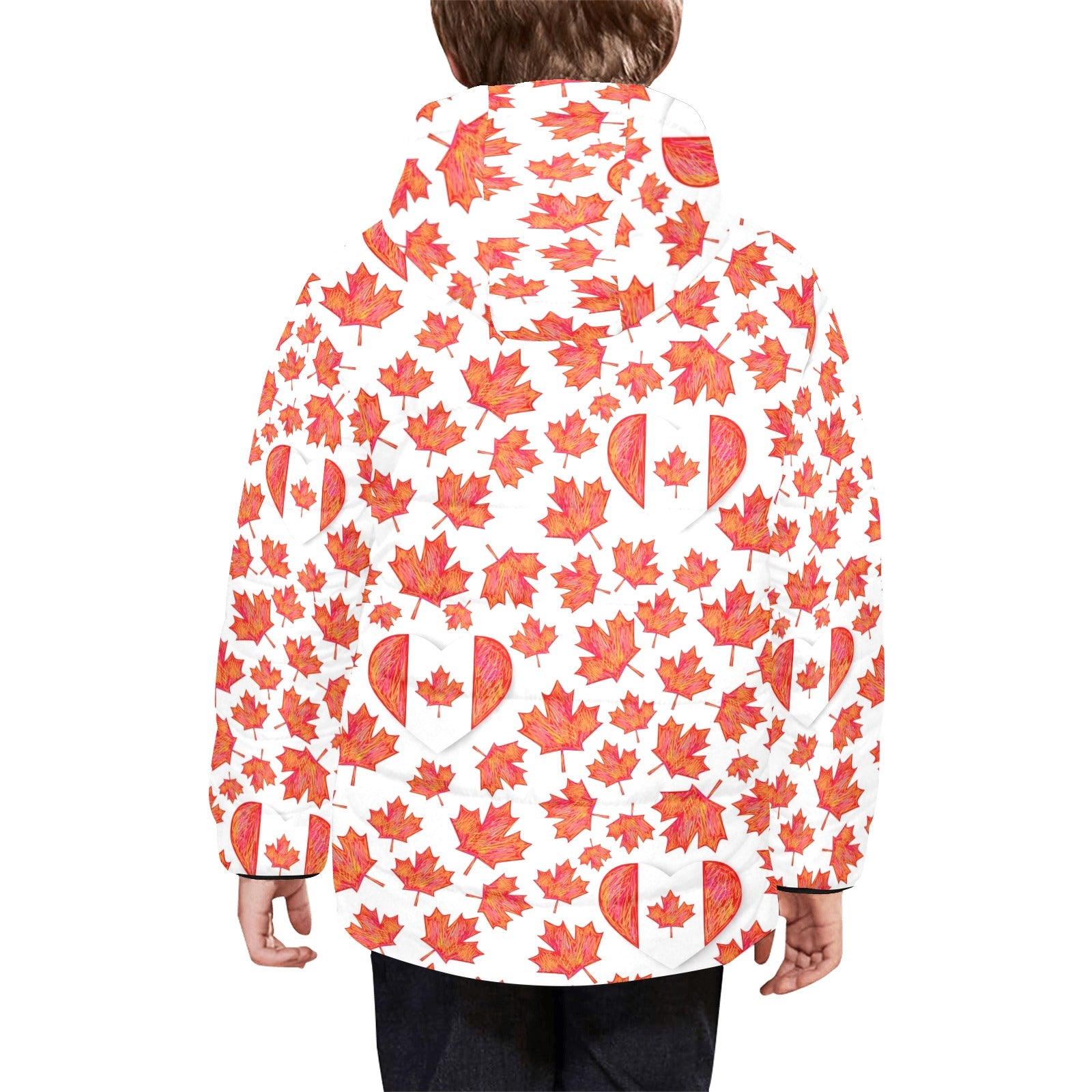 Canada Pattern Print Design 02 Kids' Boys' Girls' Padded Hooded Jacket