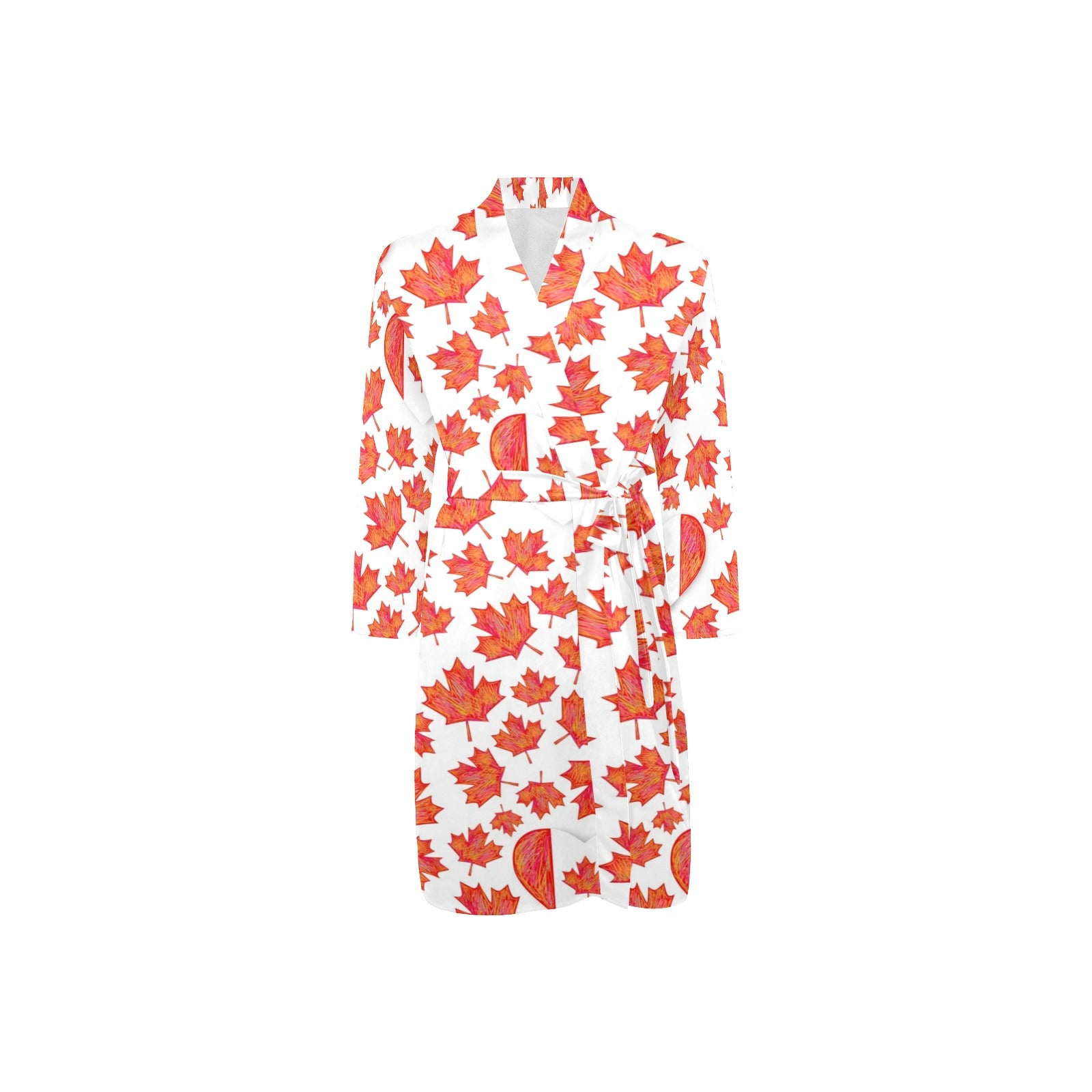 Canada Pattern Print Design 02 Men's Long Sleeve Belted Night Robe
