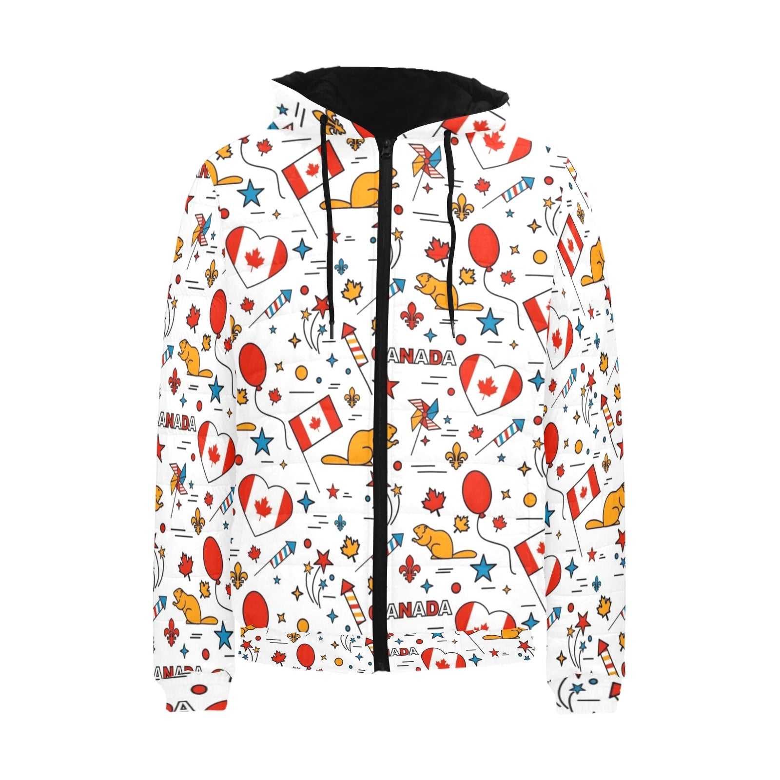 Canada Pattern Print Design 03 Men's Padded Hooded Jacket