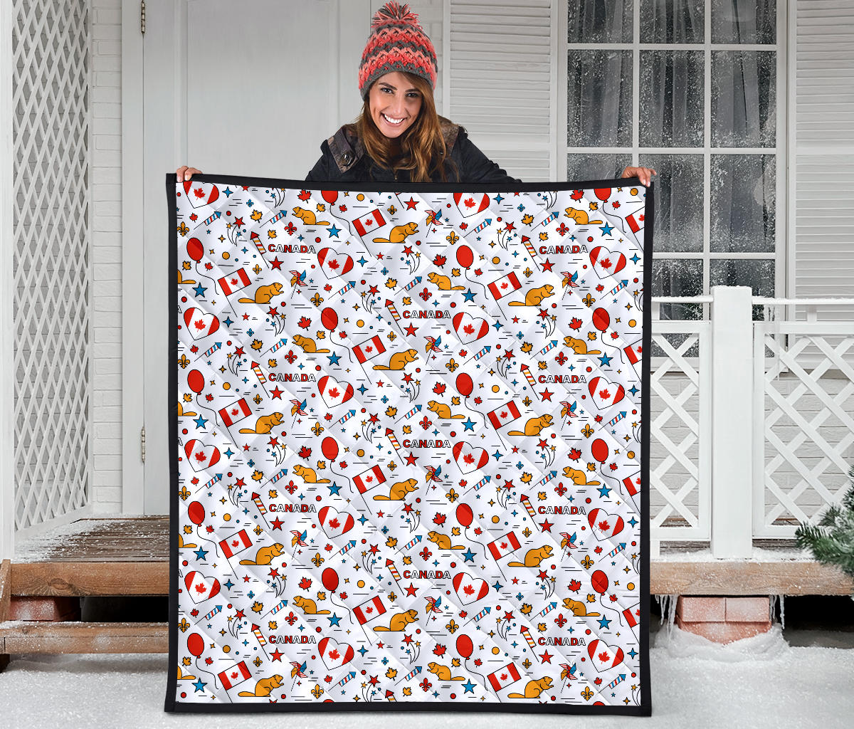 Canada Pattern Print Design 03 Premium Quilt is a uniqued design and limited item. It made to order, hand printed, and sewn with love in our factory.