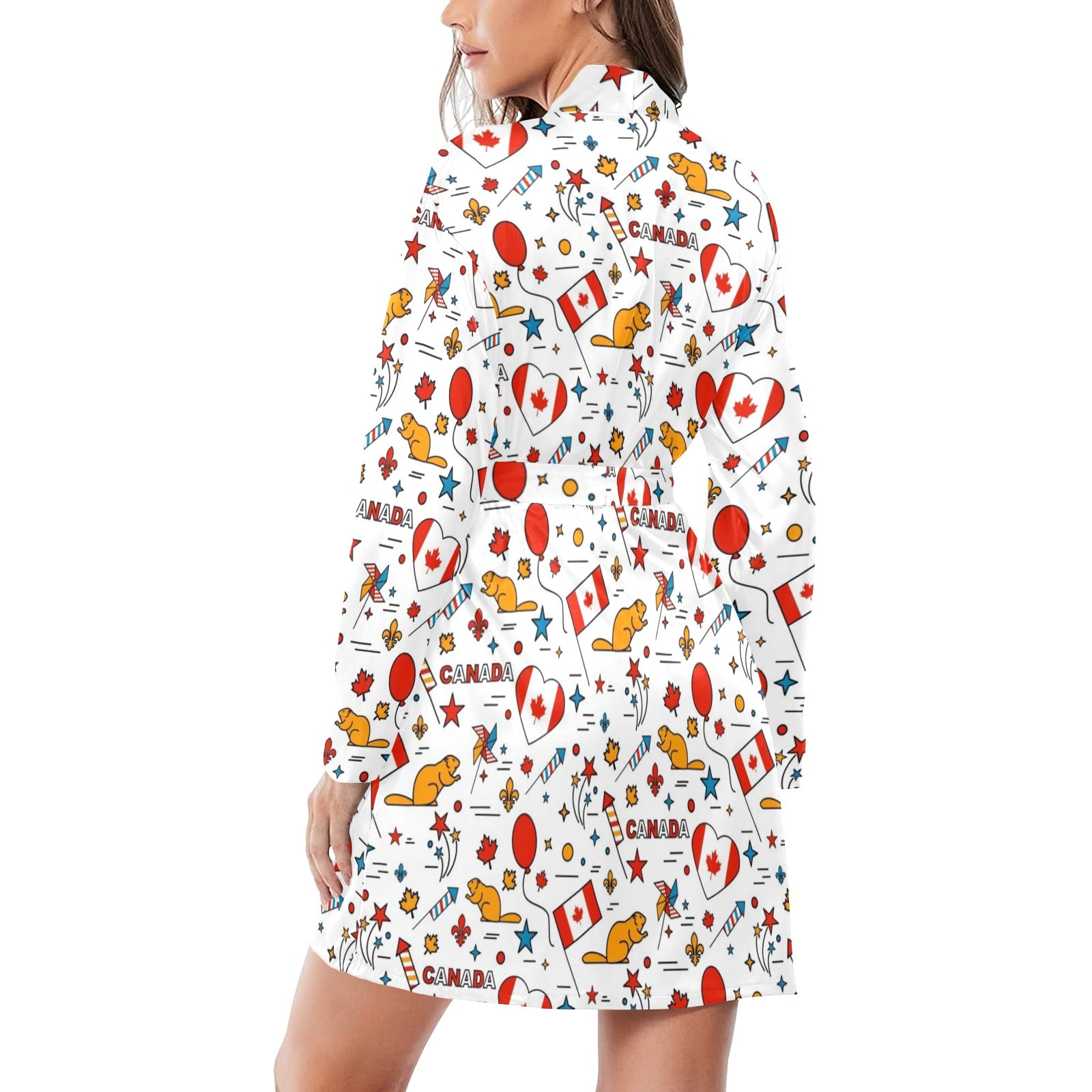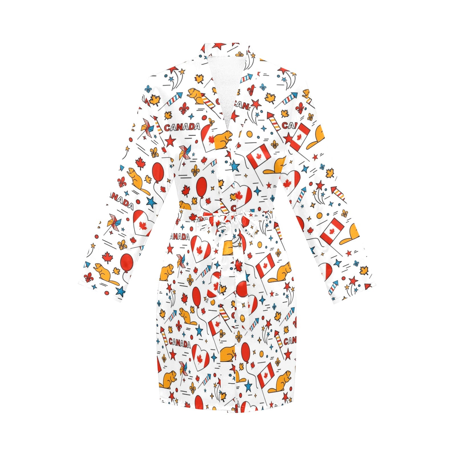 Canada Pattern Print Design 03 Women's Long Sleeve Belted Night Robe