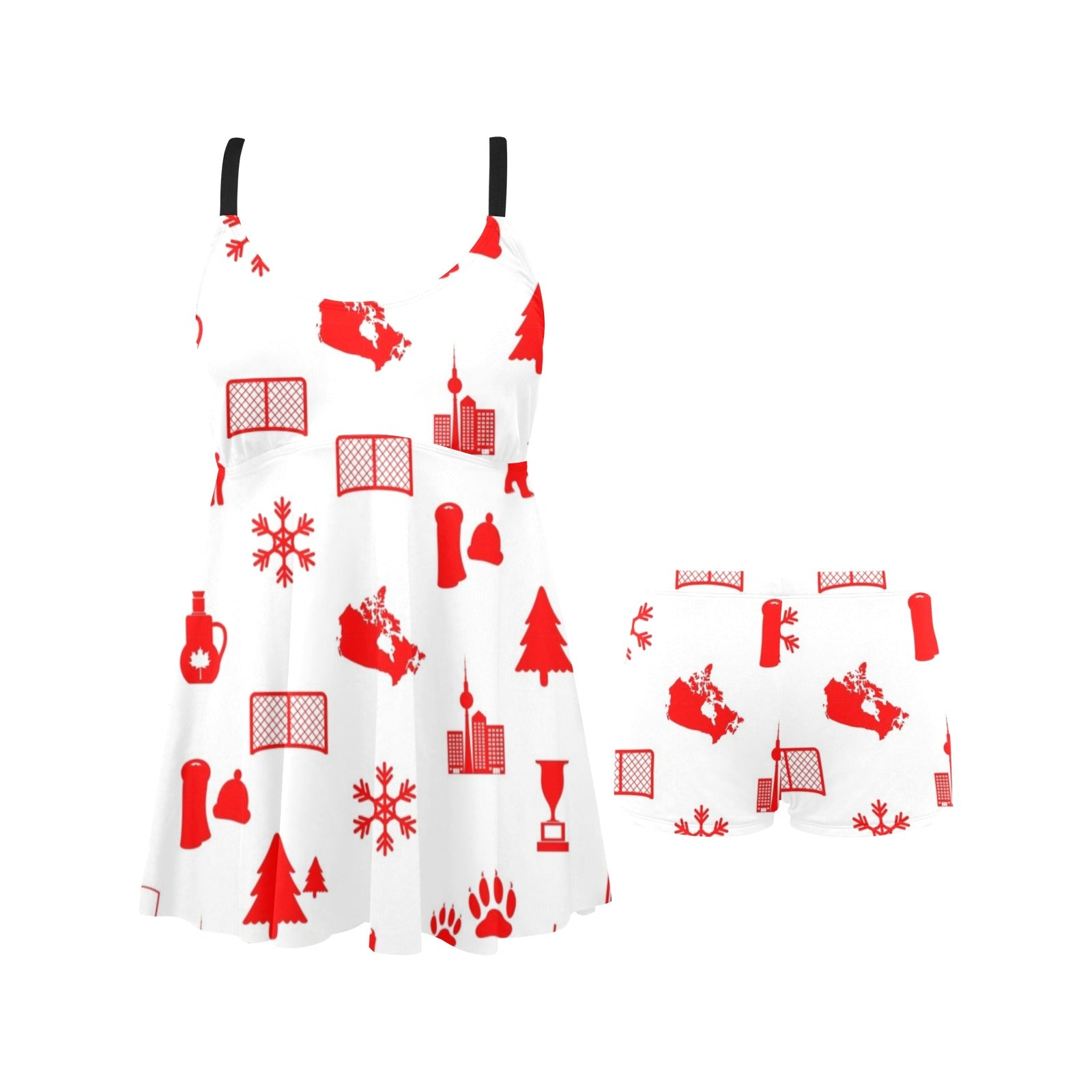 Canada Pattern Print Design 04 Chest Sexy Pleated Two Piece Swim Dress