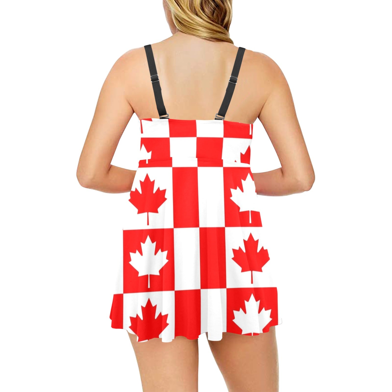 Canada Pattern Print Design 05 Chest Sexy Pleated Two Piece Swim Dress