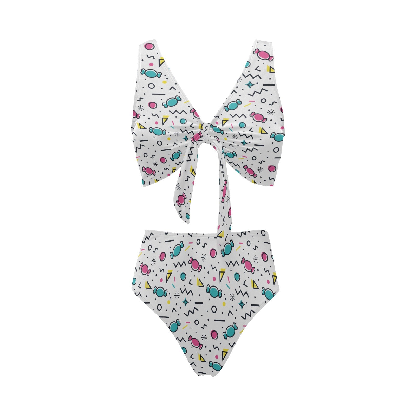 Candy design pattern Chest Bowknot High Waisted Bikini Swimsuit