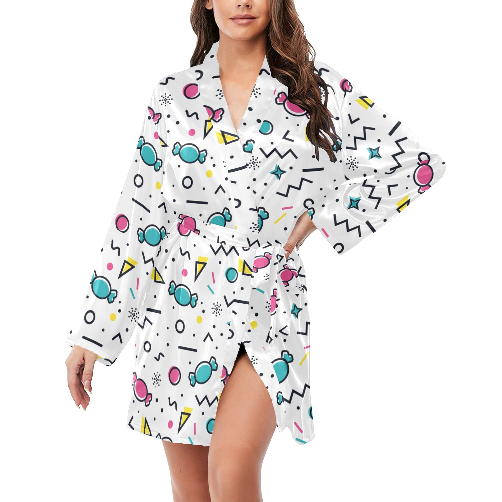 Candy design pattern Women's Long Sleeve Belted Night Robe