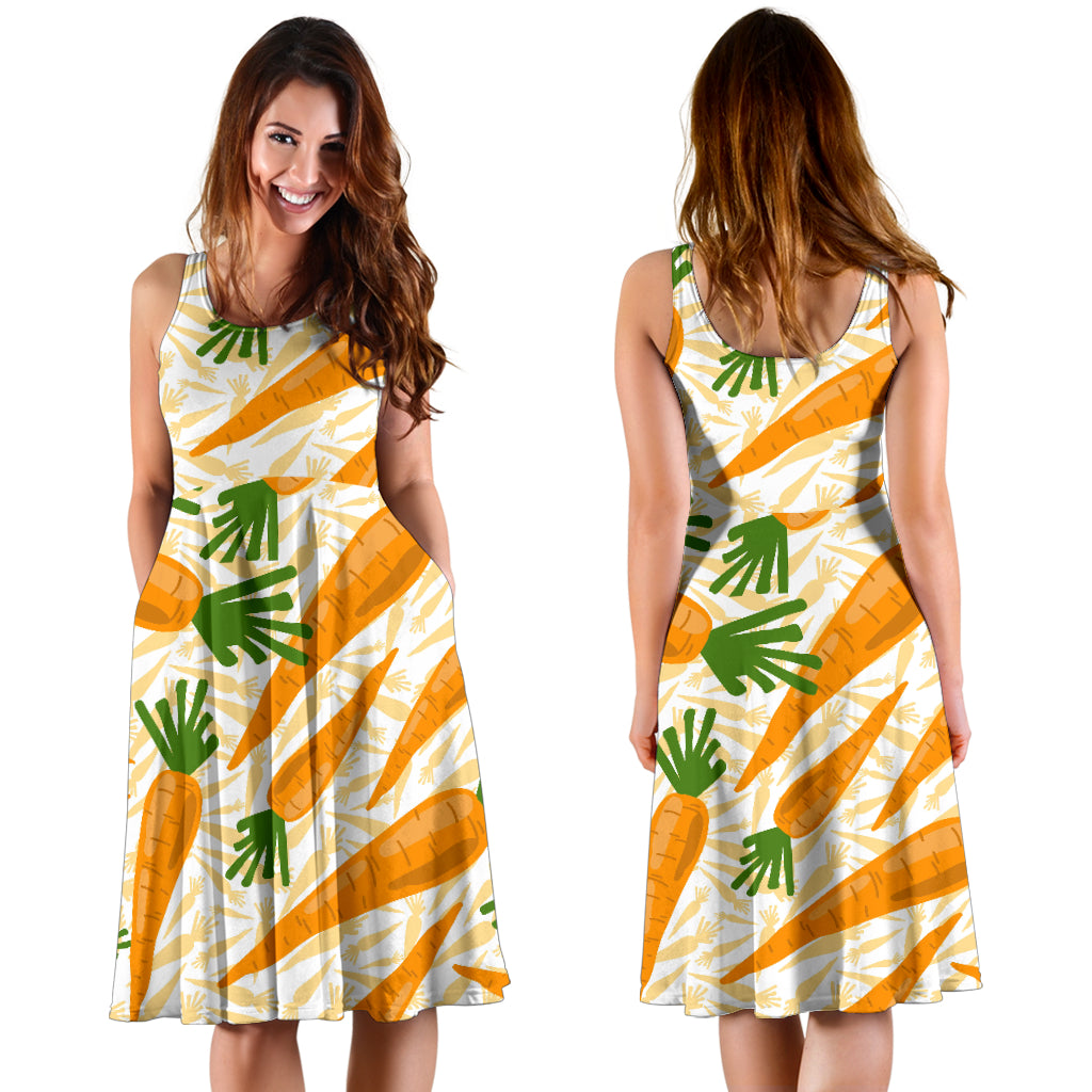 Carrot Pattern Print Design 01 Sleeveless Midi Dress
