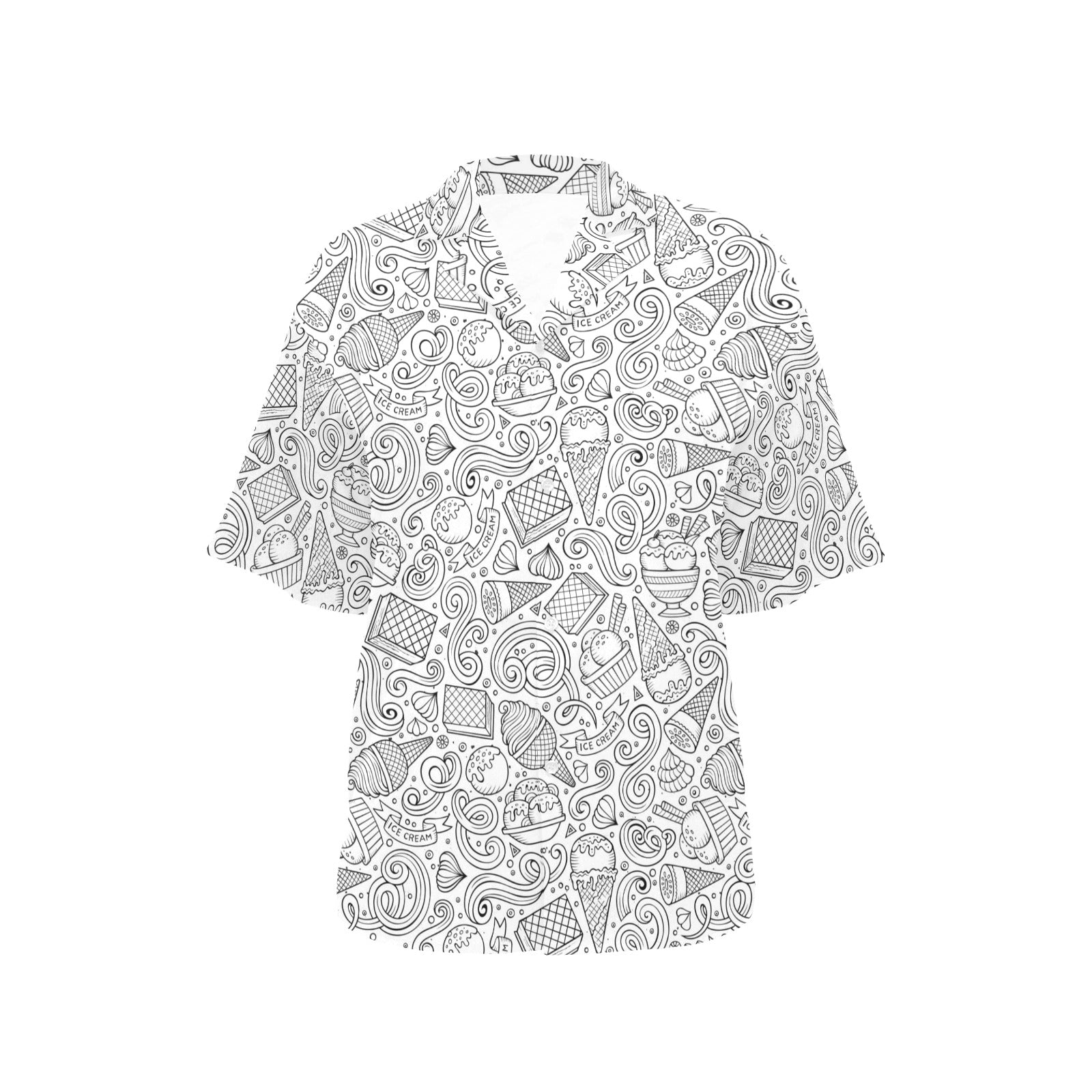 Cartoon hand drawn ice cream black white Women's All Over Print Hawaiian Shirt