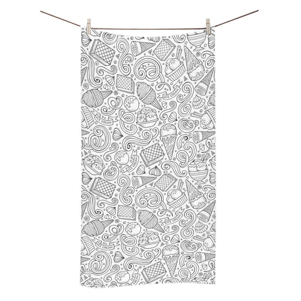 Cartoon hand drawn ice cream black white Bath Towel 30"x56" is a uniqued design and limited item. It made to order, hand printed, and sewn with love in our factory.