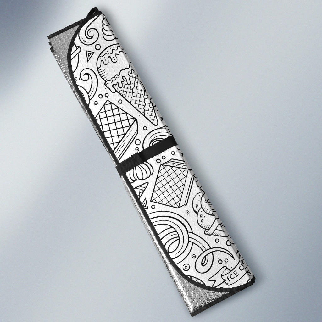 Cartoon Hand Drawn Ice Cream Black White Car Sun Shade