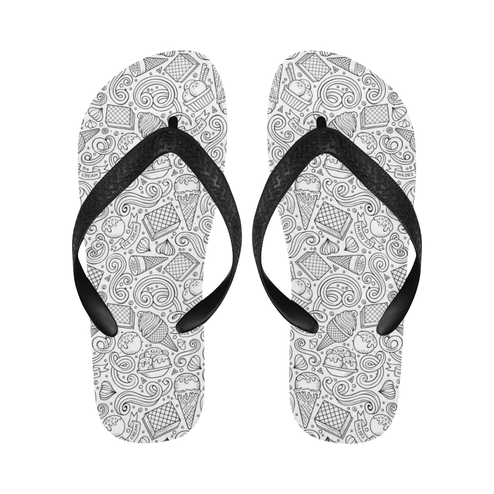 Cartoon hand drawn ice cream black white Unisex Flip Flops is a uniqued design and limited item. It made to order, hand printed, and sewn with love in our factory.