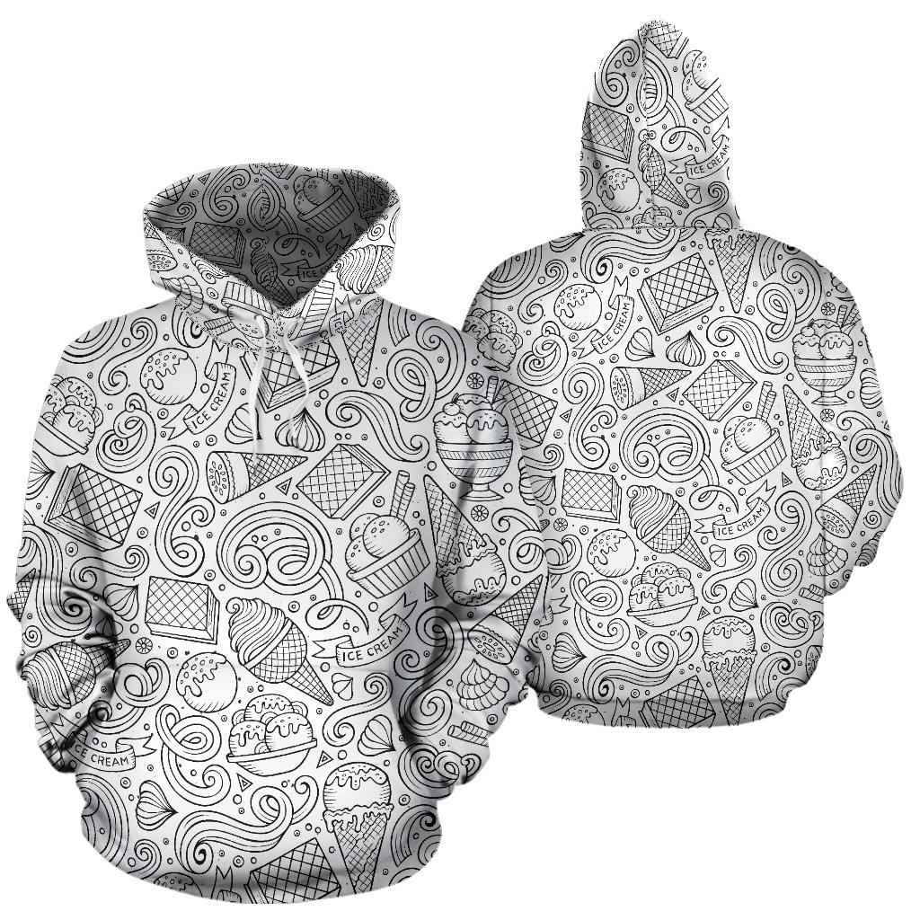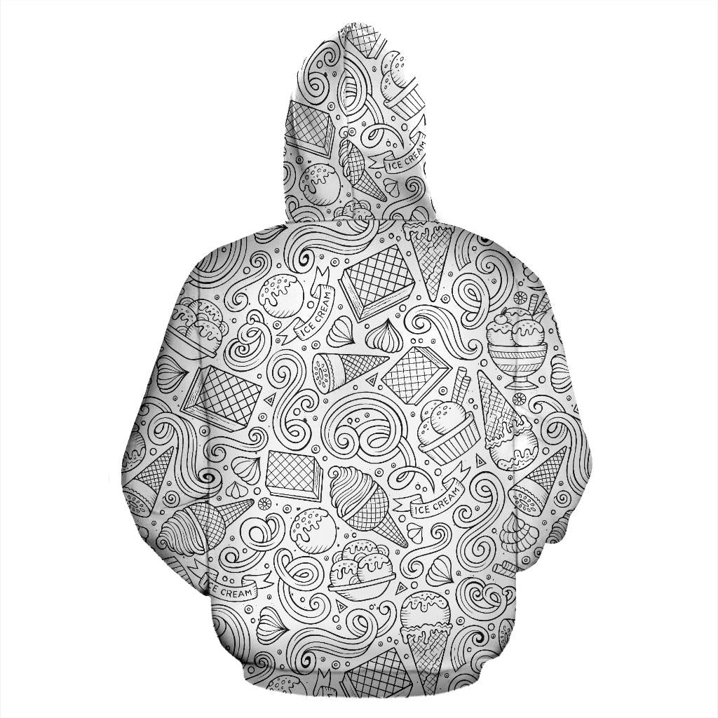 Cartoon Hand Drawn Ice Cream Black White Men Women Pullover Hoodie
