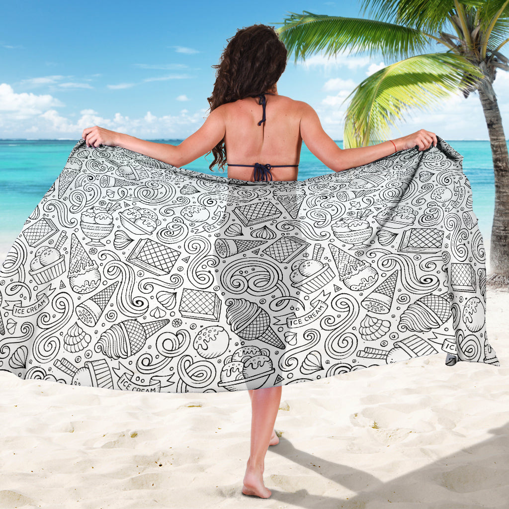 Cartoon Hand Drawn Ice Cream Black White Sarong