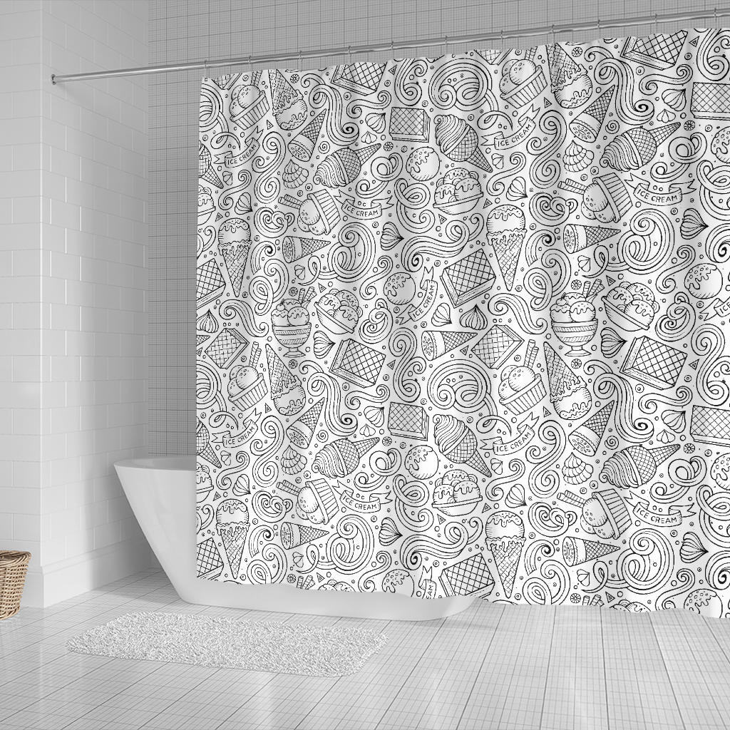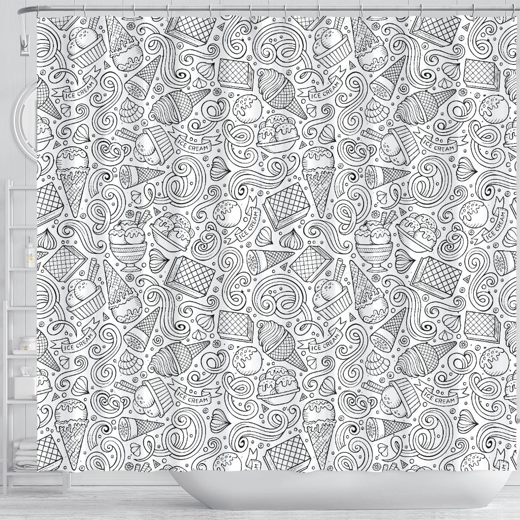 Cartoon Hand Drawn Ice Cream Black White Shower Curtain Fulfilled In US
