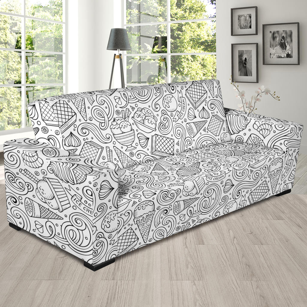 Cartoon Hand Drawn Ice Cream Black White Sofa Slipcover