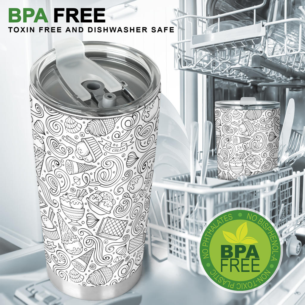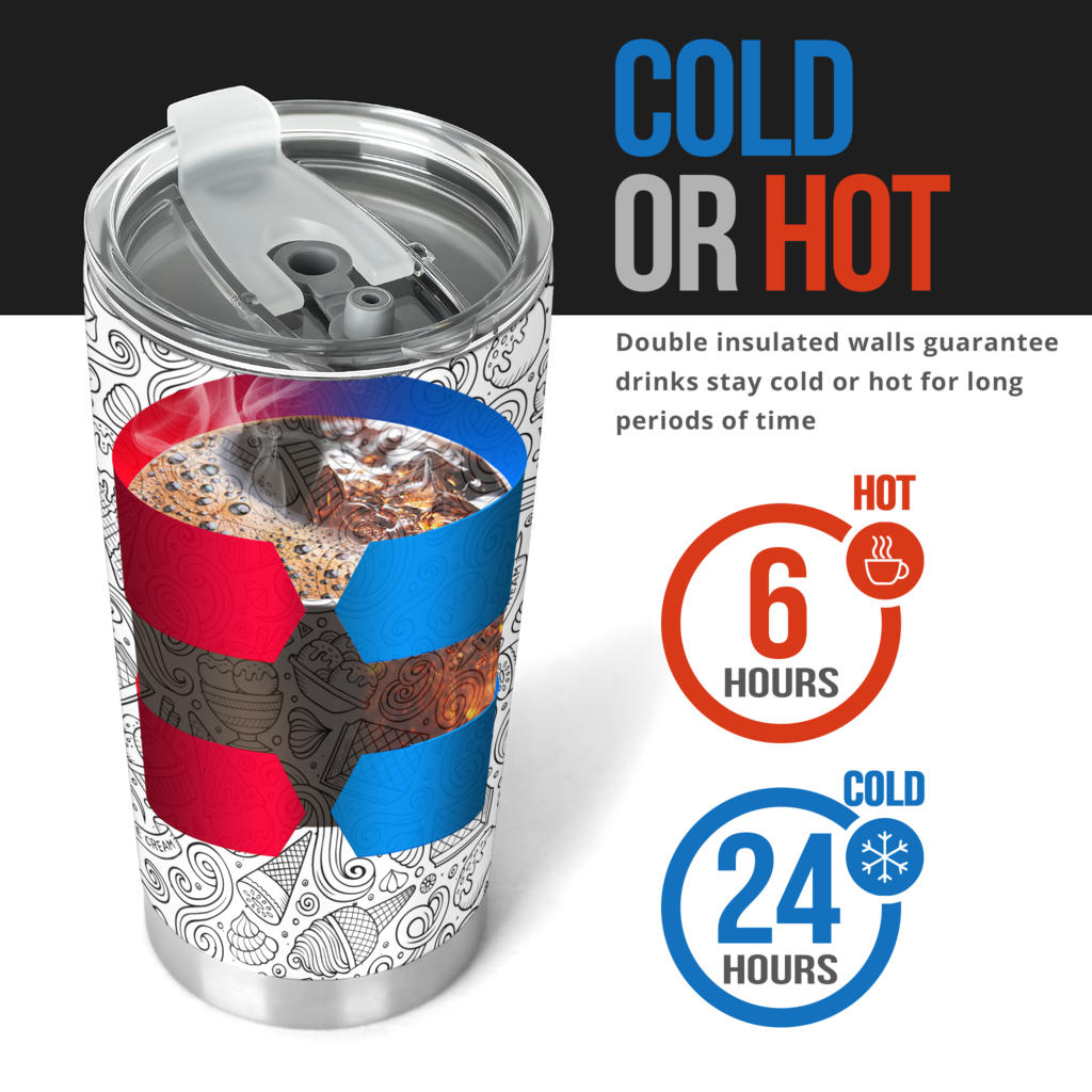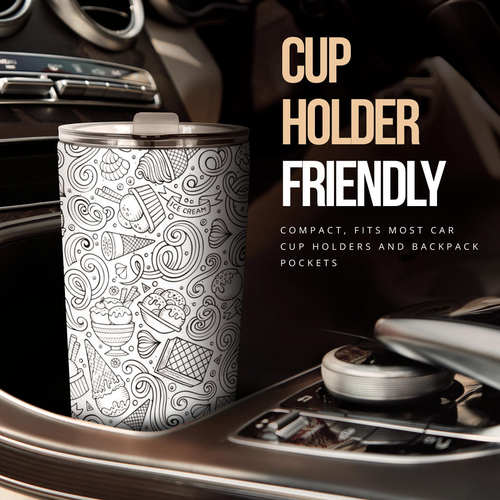 Cartoon hand drawn ice cream black white Tumbler is a uniqued design and limited item. It made to order and hand printed with love in our factory.
