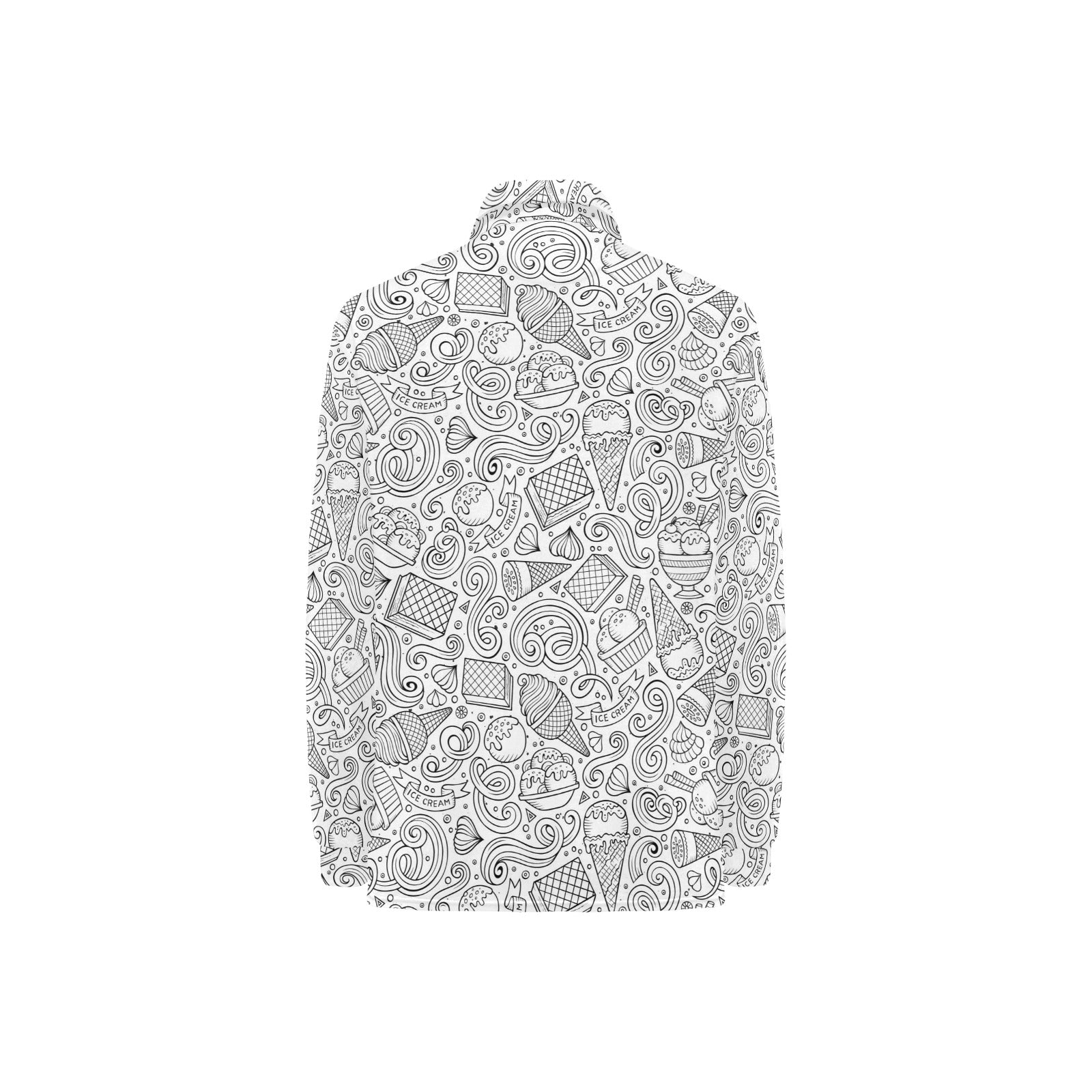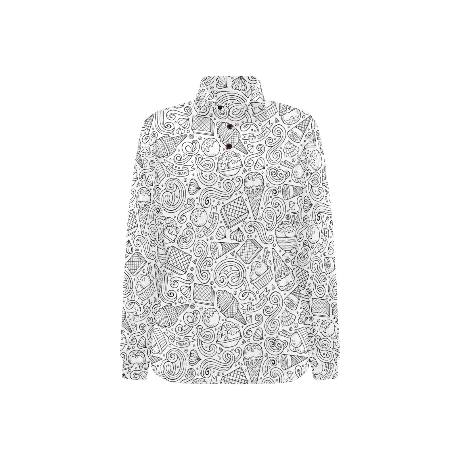 Cartoon hand drawn ice cream black white Women's Long Sleeve Polo Shirt