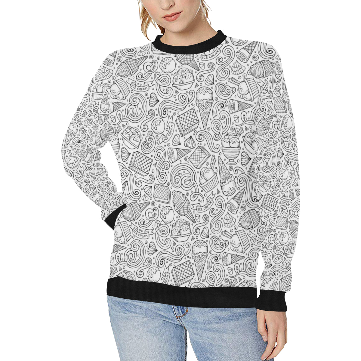 Cartoon hand drawn ice cream black white Women's Crew Neck Sweatshirt