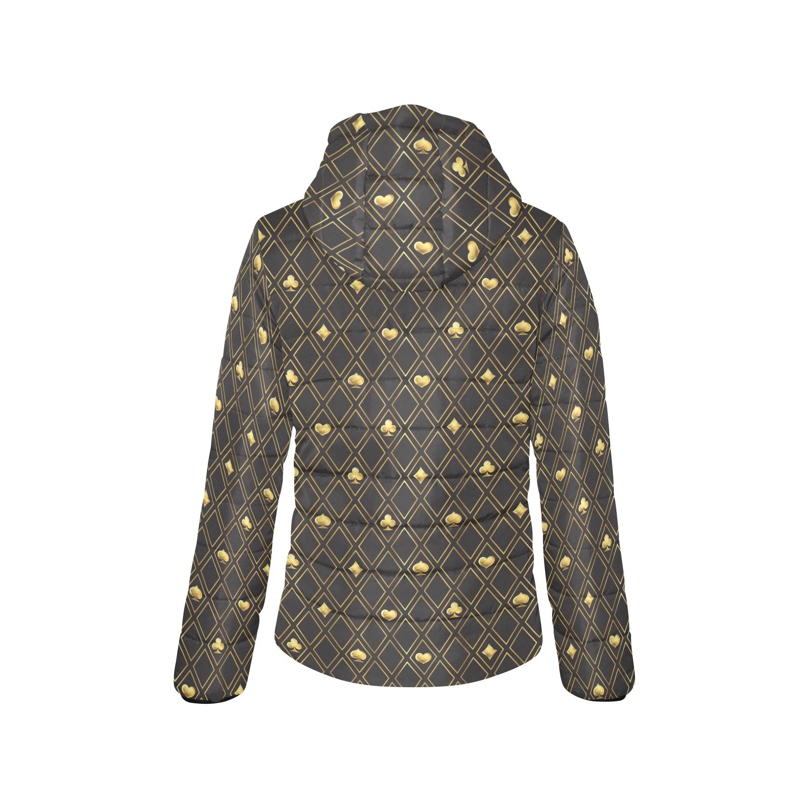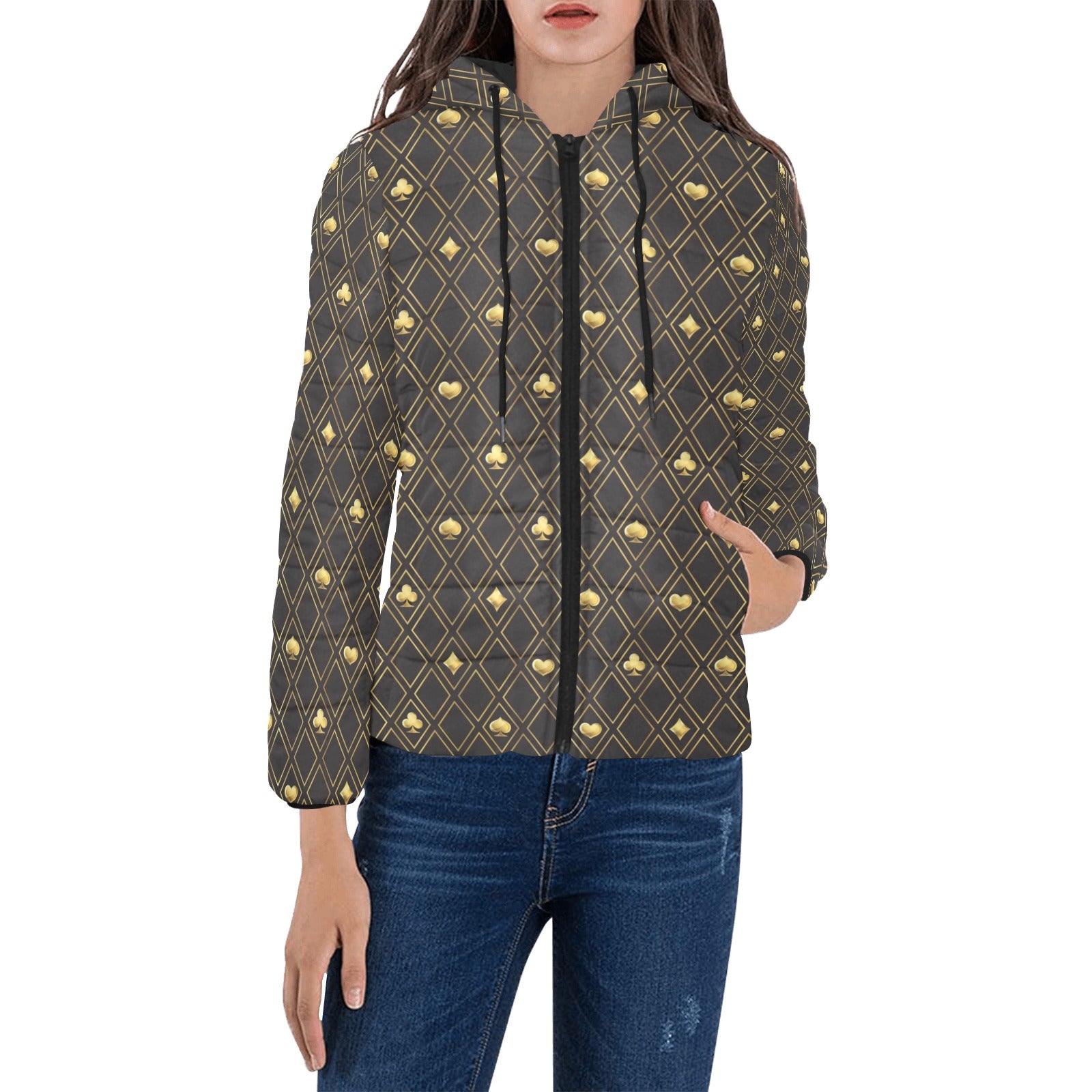 Casino Cards Suits Pattern Print Design 01 Women's Padded Hooded Jacket