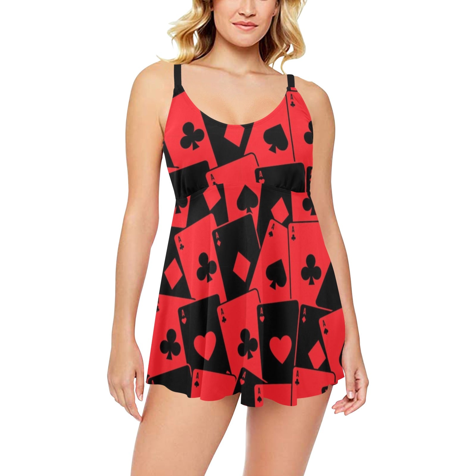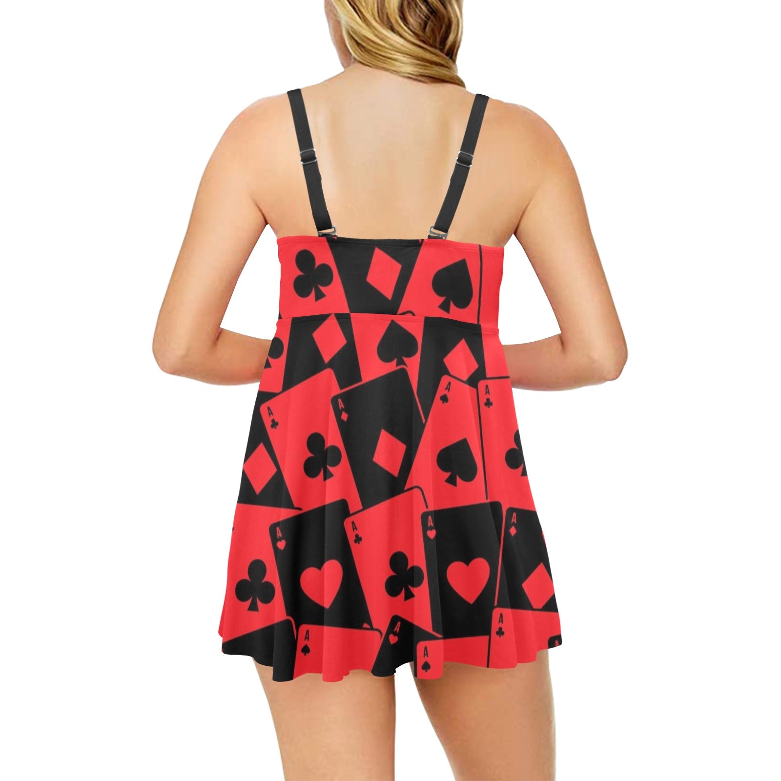 Casino Cards Suits Pattern Print Design 02 Chest Sexy Pleated Two Piece Swim Dress