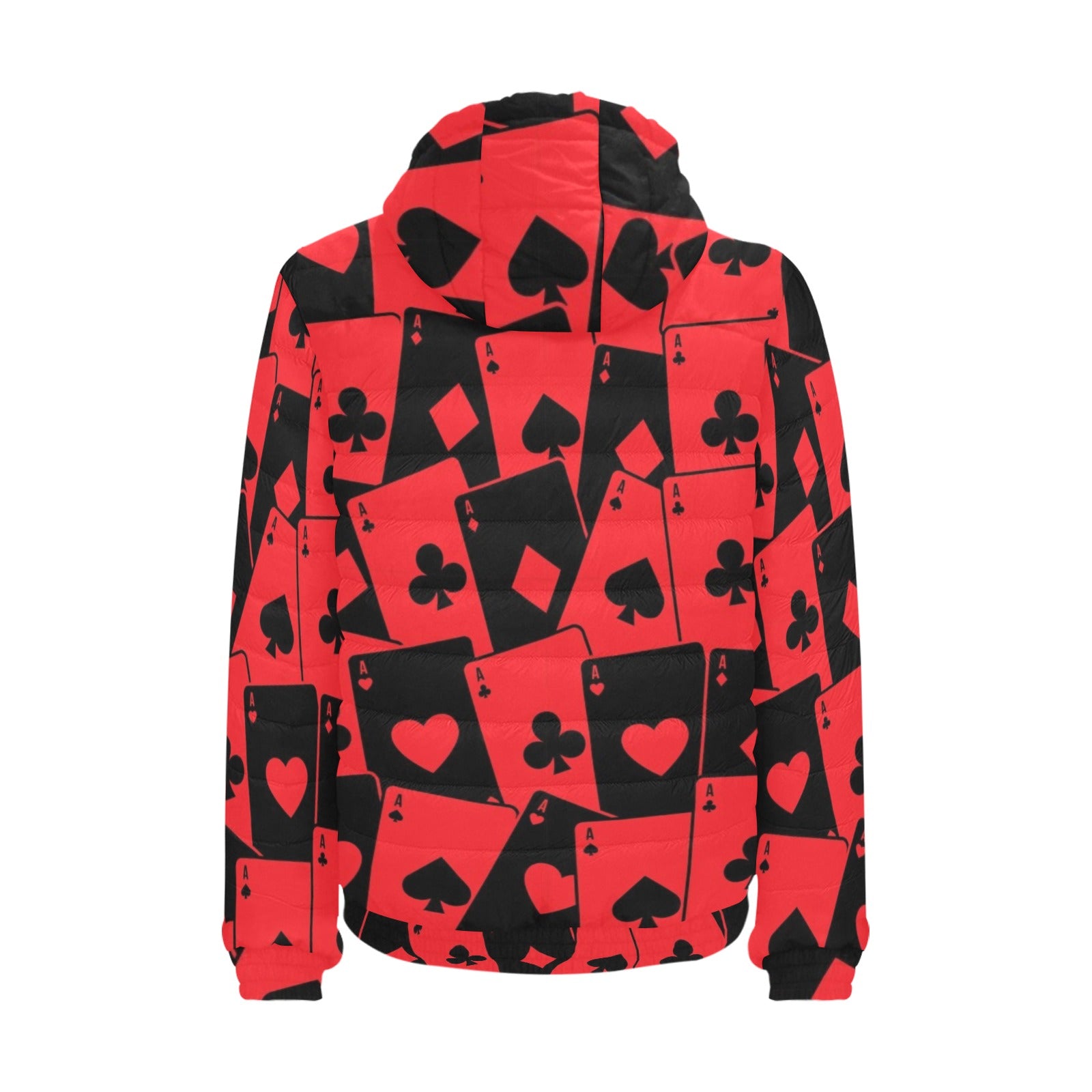 Casino Cards Suits Pattern Print Design 02 Men's Padded Hooded Jacket