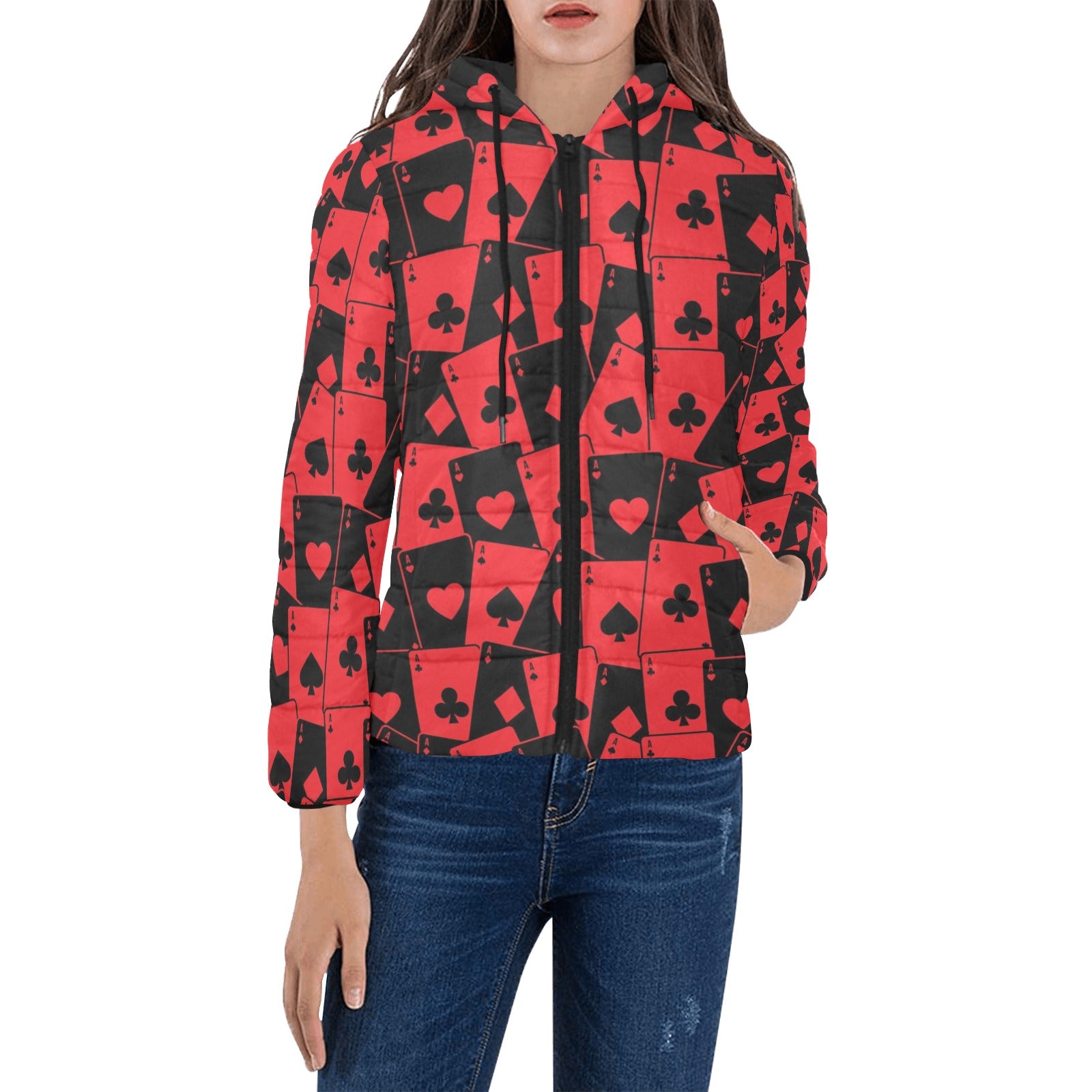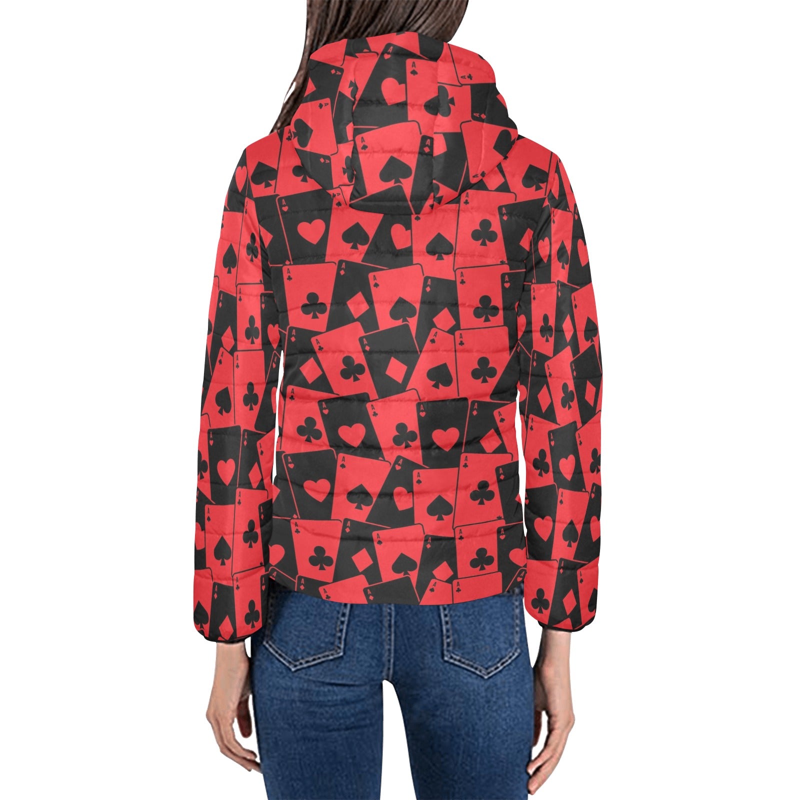 Casino Cards Suits Pattern Print Design 02 Women's Padded Hooded Jacket