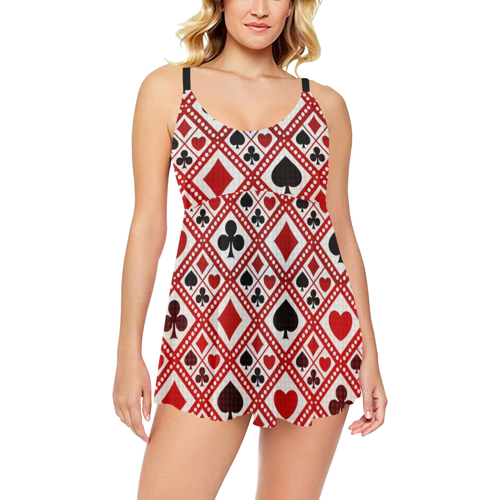 Casino Cards Suits Pattern Print Design 03 Chest Sexy Pleated Two Piece Swim Dress