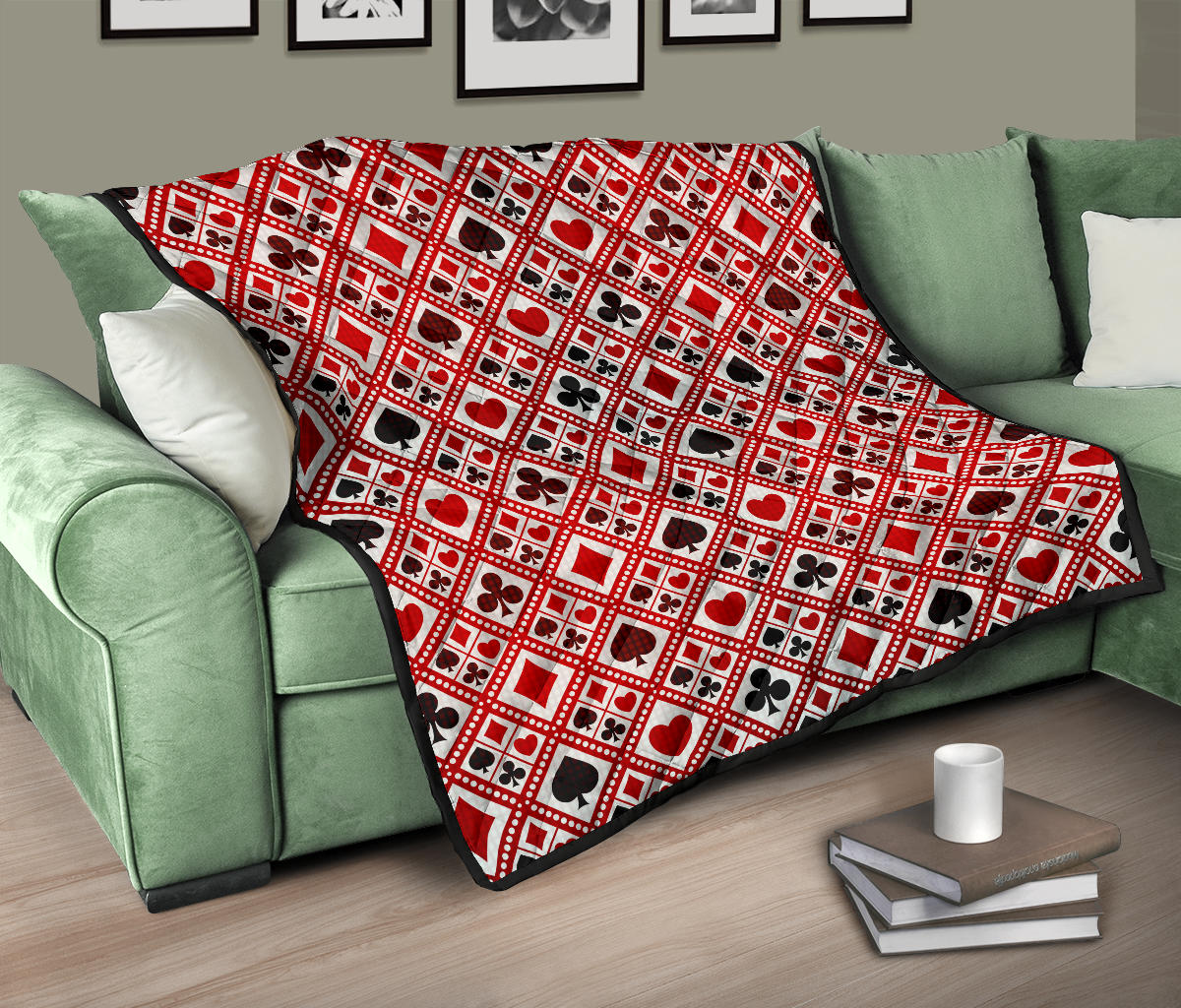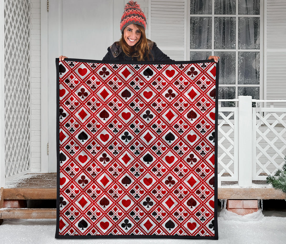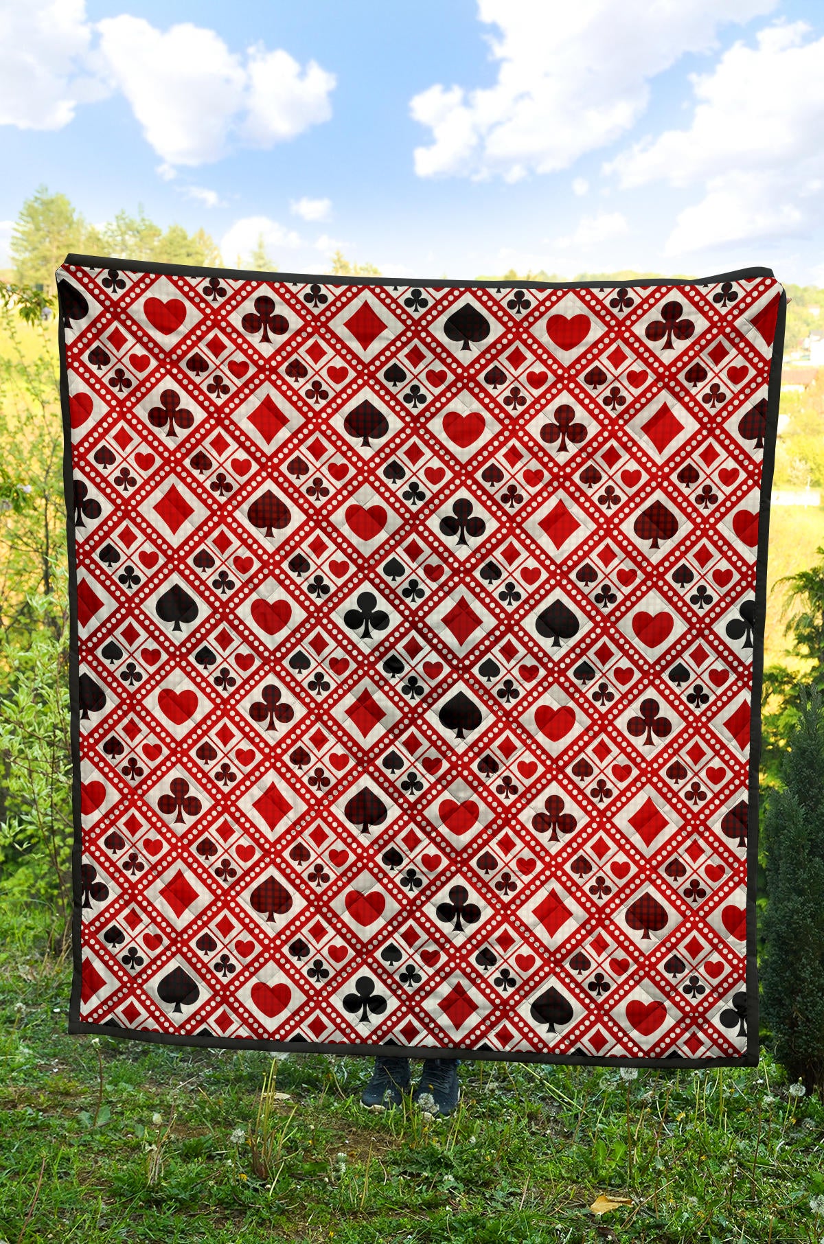 Casino Cards Suits Pattern Print Design 03 Premium Quilt is a uniqued design and limited item. It made to order, hand printed, and sewn with love in our factory.