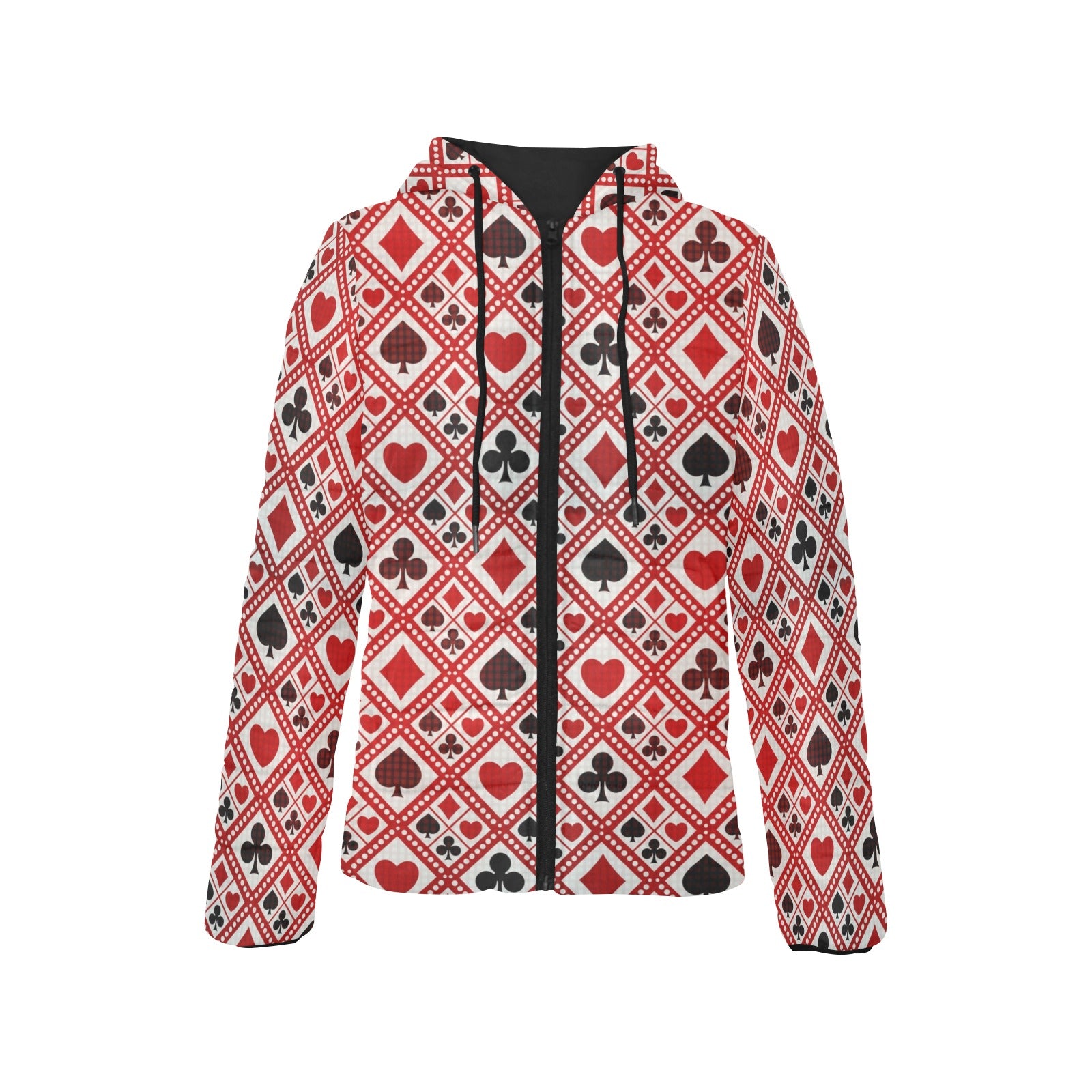 Casino Cards Suits Pattern Print Design 03 Women's Padded Hooded Jacket