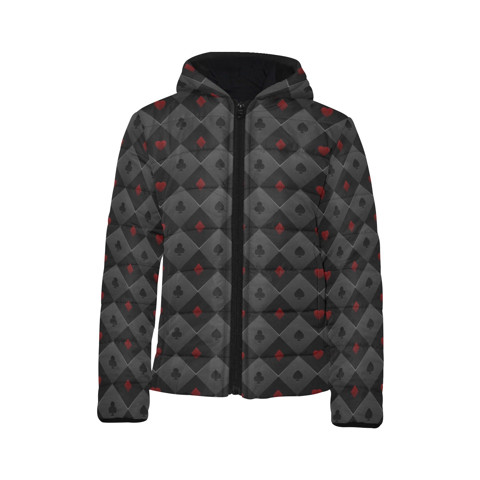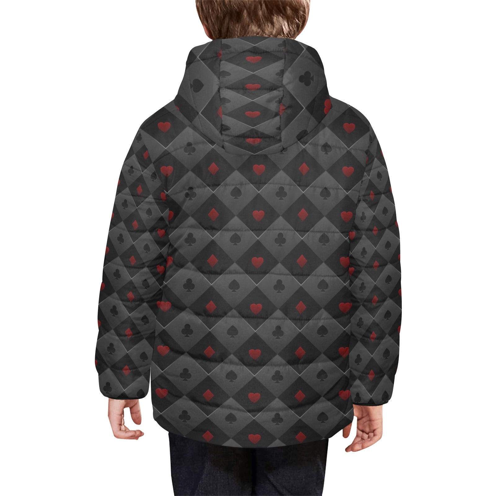 Casino Cards Suits Pattern Print Design 05 Kids' Boys' Girls' Padded Hooded Jacket