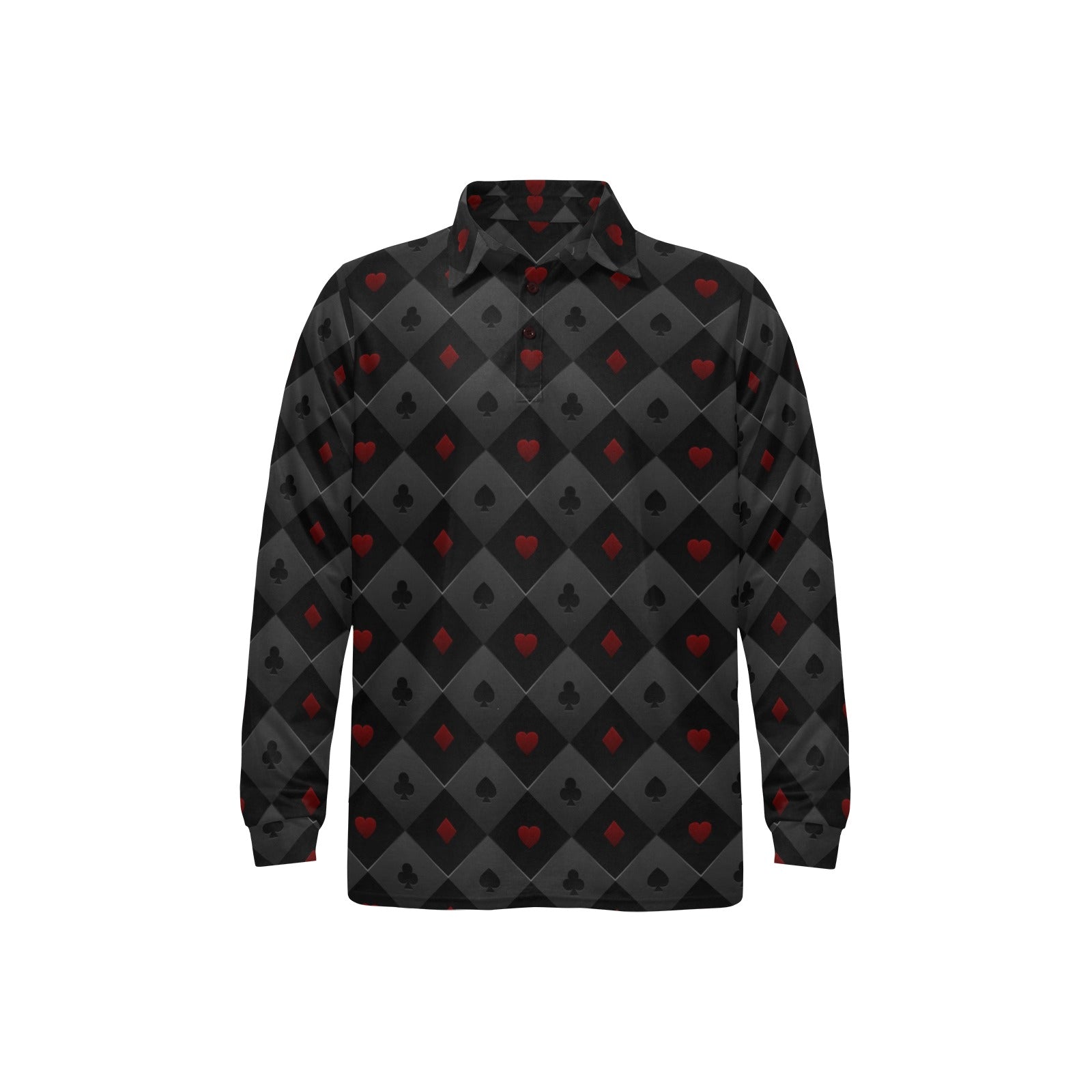Casino Cards Suits Pattern Print Design 05 Men's Long Sleeve Polo Shirt