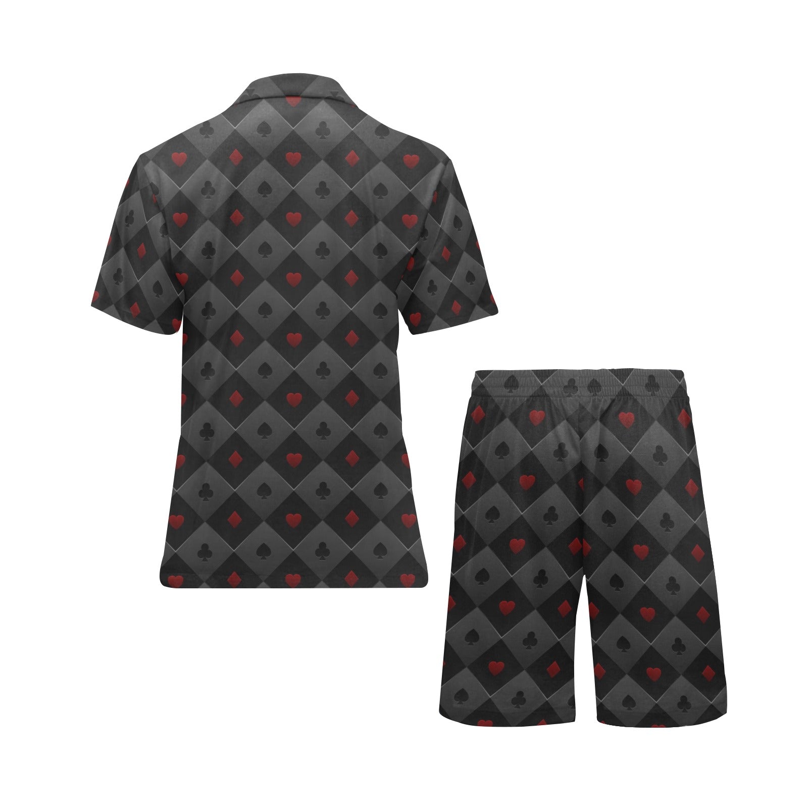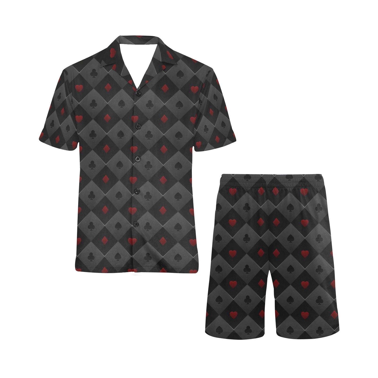 Casino Cards Suits Pattern Print Design 05 Men's V-Neck Short Pajama Set