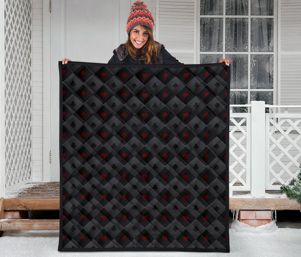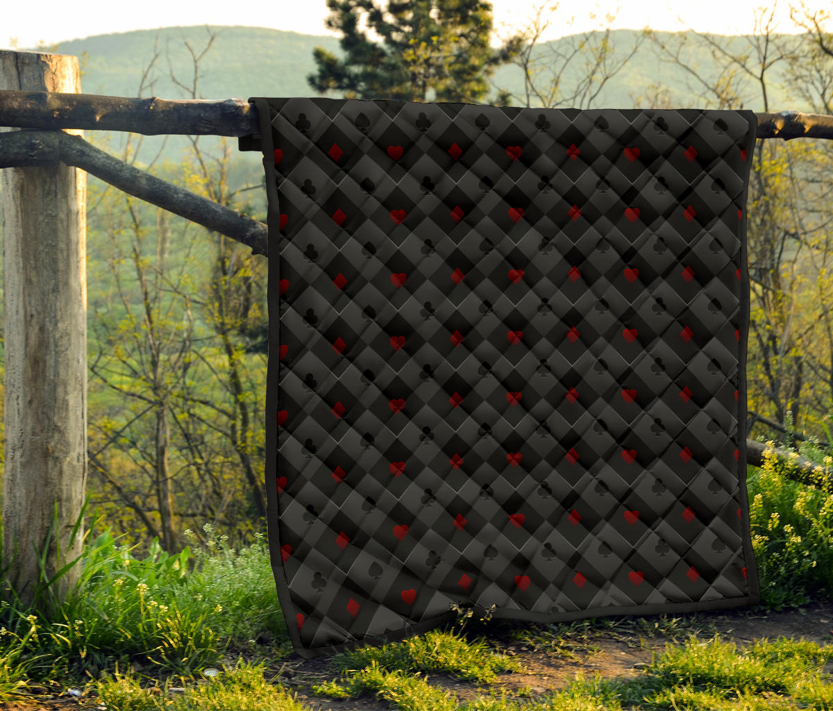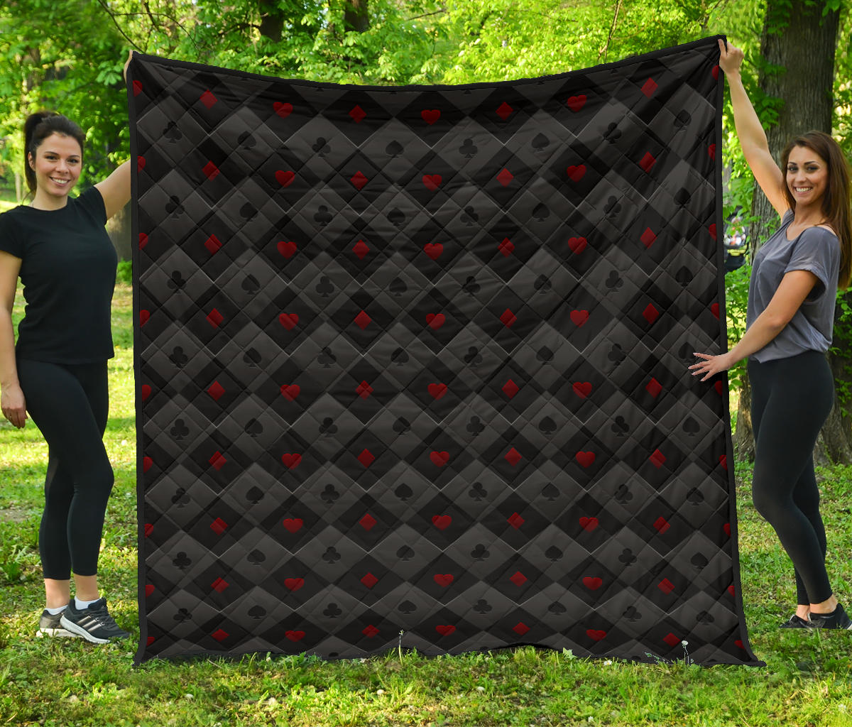 Casino Cards Suits Pattern Print Design 05 Premium Quilt is a uniqued design and limited item. It made to order, hand printed, and sewn with love in our factory.