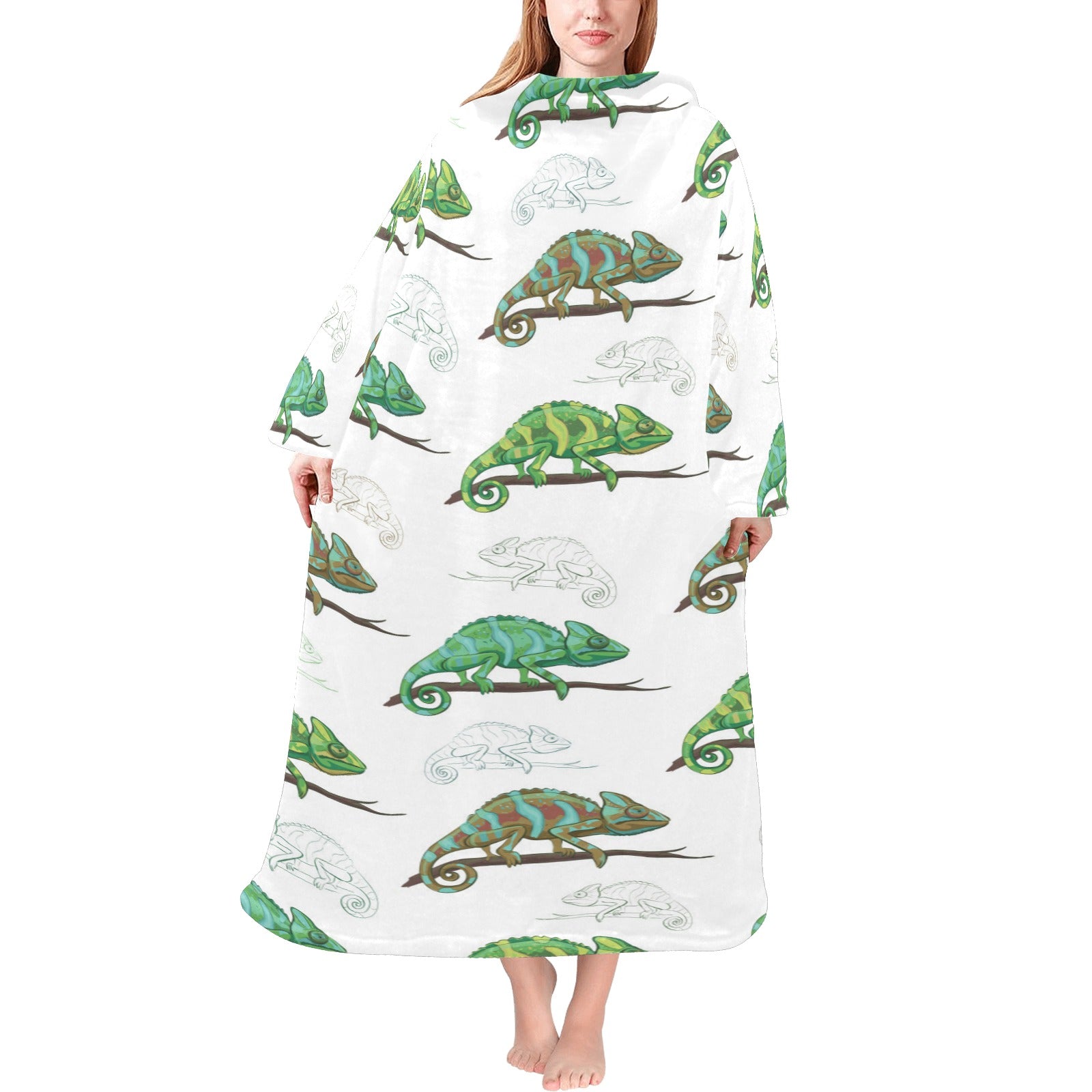 Chameleon lizard pattern Blanket Robe with Sleeves
