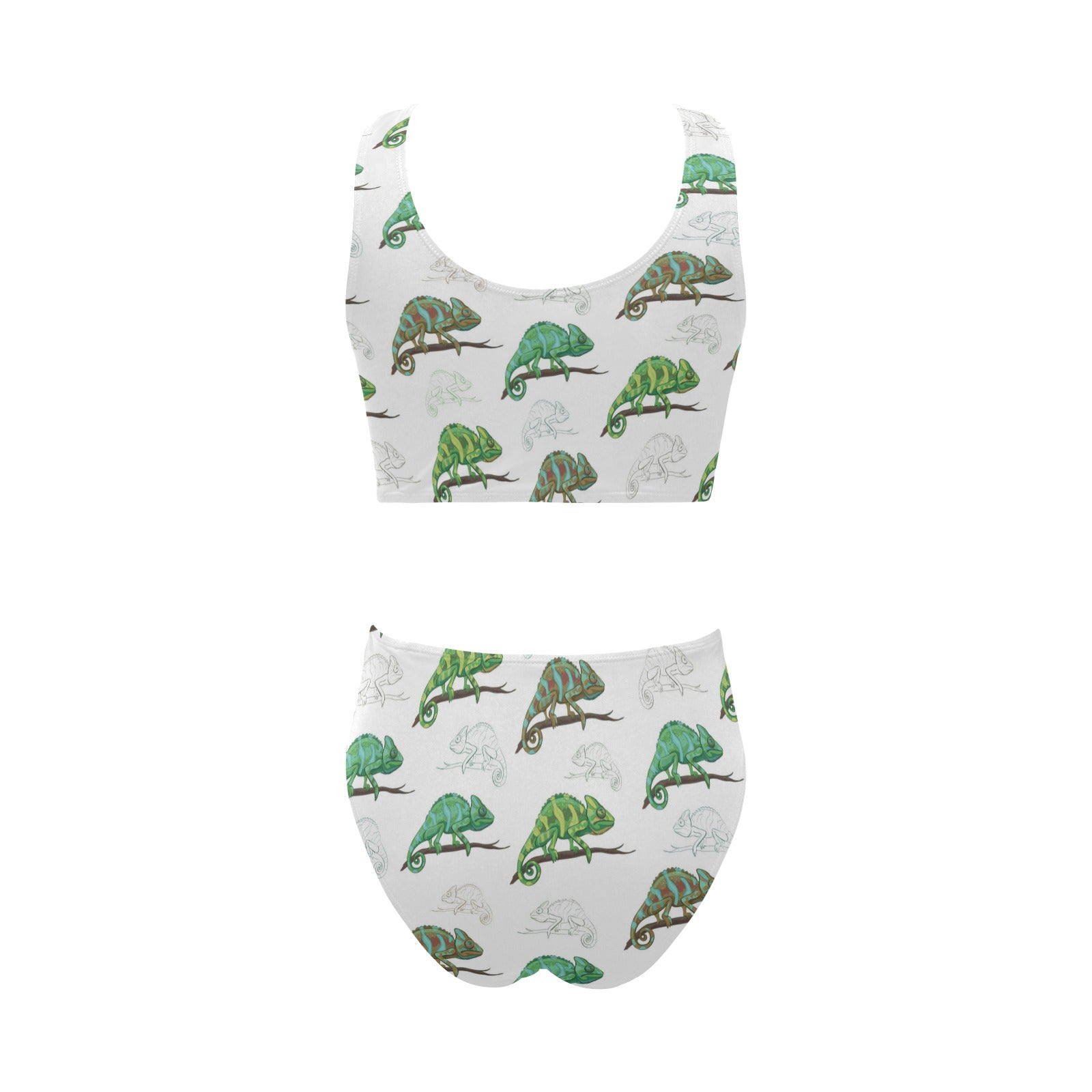 Chameleon lizard pattern Chest Bowknot High Waisted Bikini Swimsuit