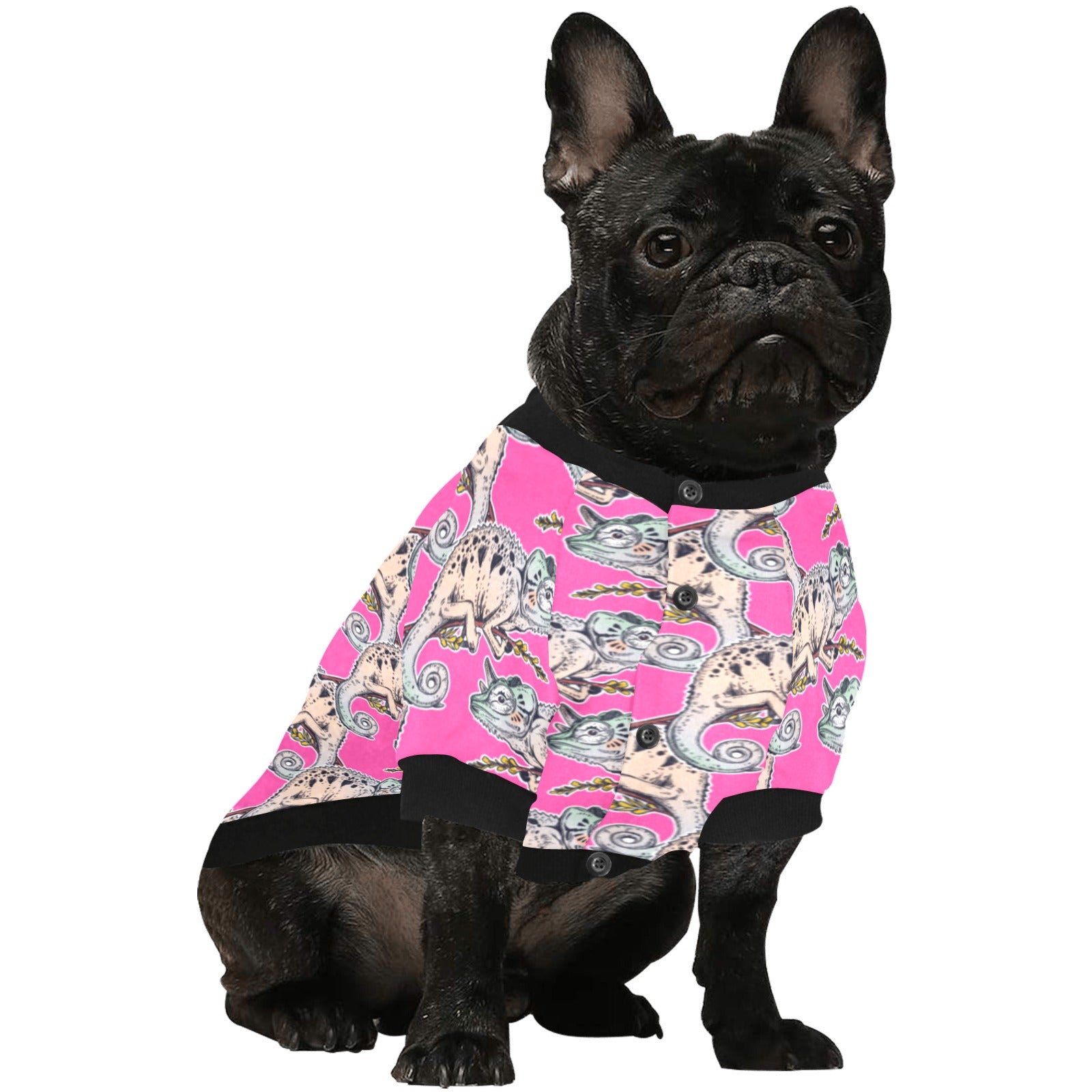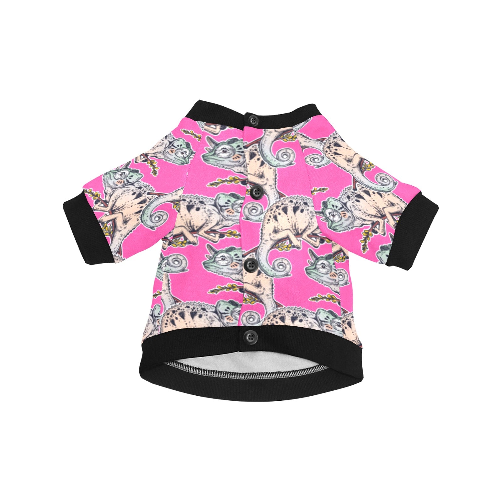 Chameleon lizard pattern pink background All Over Print Pet Dog Round Neck Fuzzy Shirt