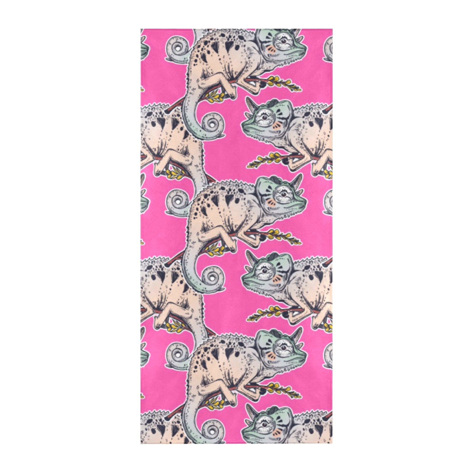 Chameleon lizard pattern pink background Beach Towel