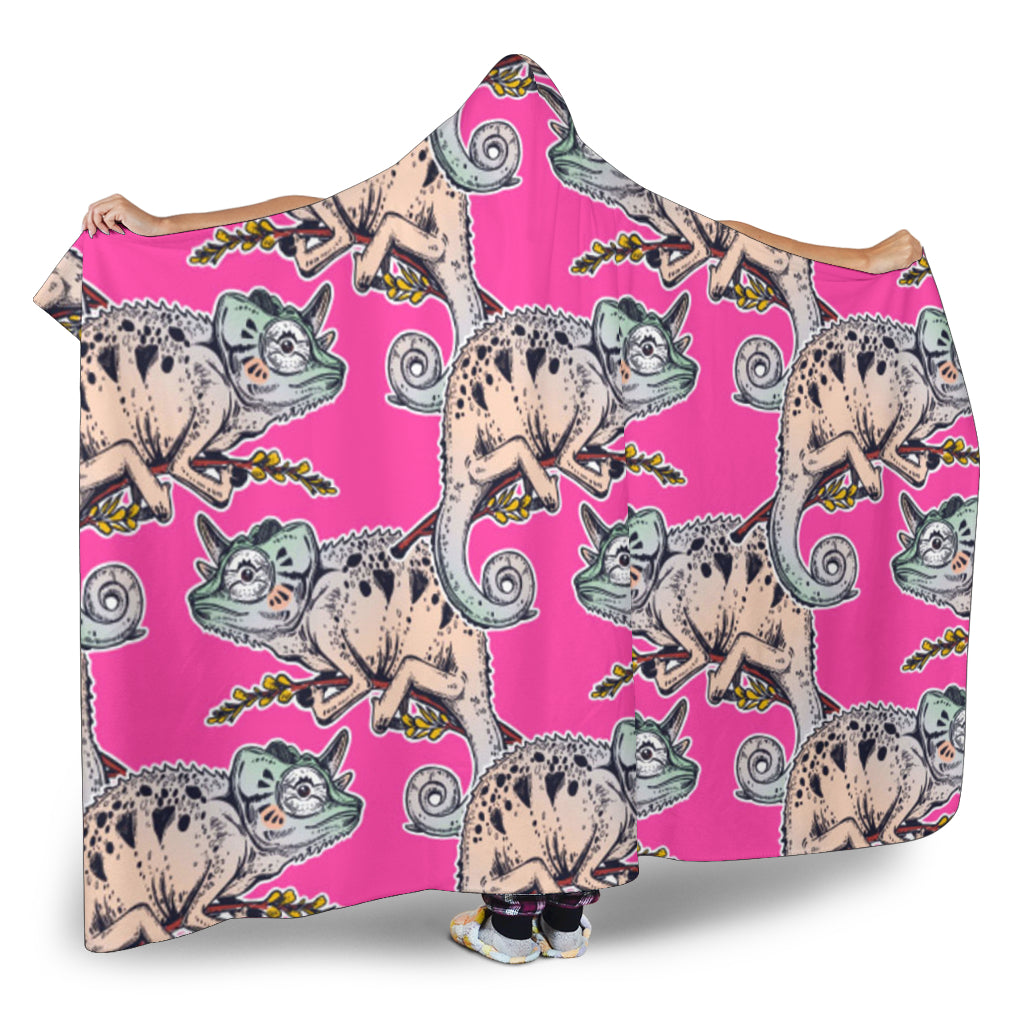 Chameleon lizard pattern pink background Hooded Blanket are custom-made-to-order and handcrafted to the highest quality standards.