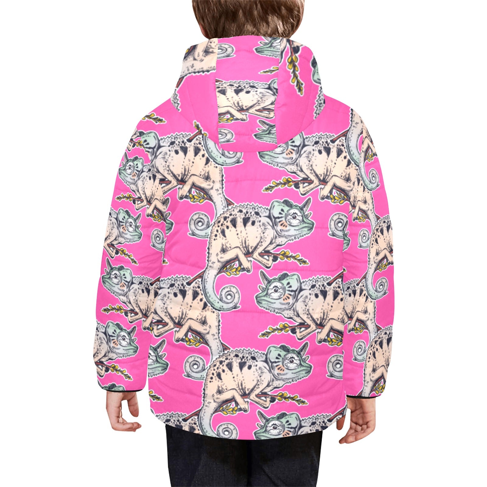 Chameleon lizard pattern pink background Kids' Boys' Girls' Padded Hooded Jacket