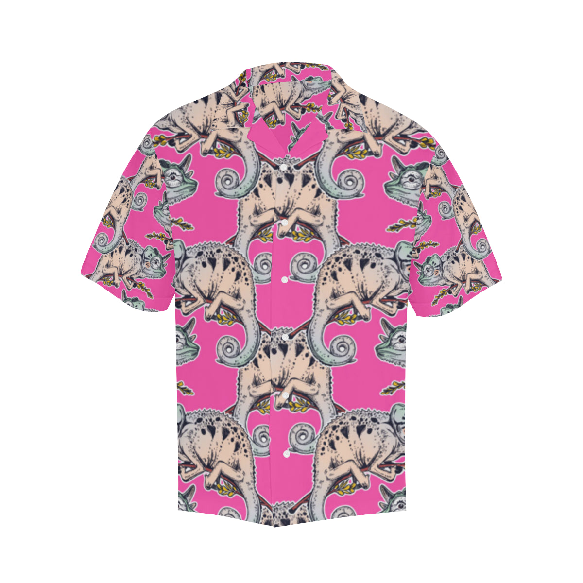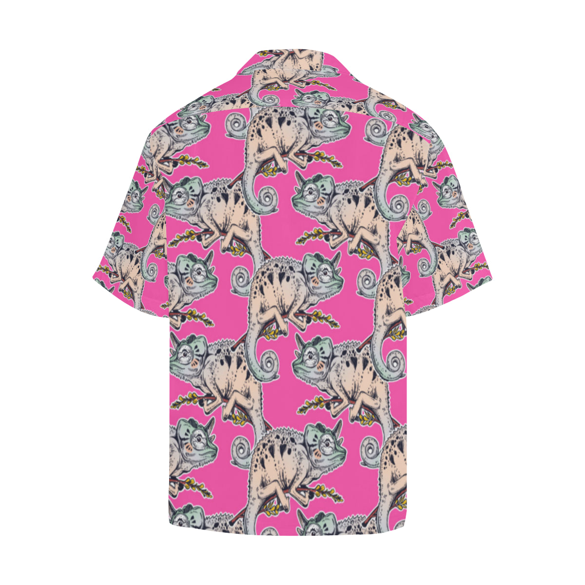 Chameleon lizard pattern pink background Men's All Over Print Hawaiian Shirt is a uniqued design and limited item. It made to order, hand printed, and sewn with love in our factory.
