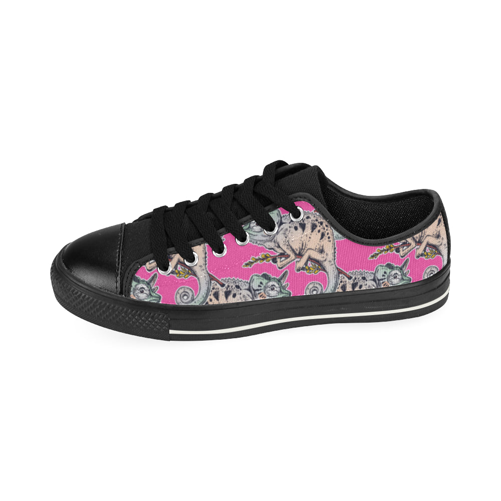 Chameleon lizard pattern pink background Men's Low Top Canvas Shoes Black