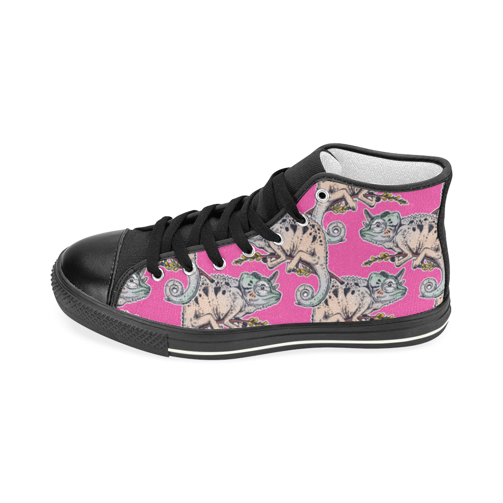 Chameleon lizard pattern pink background Men's High Top Canvas Shoes Black