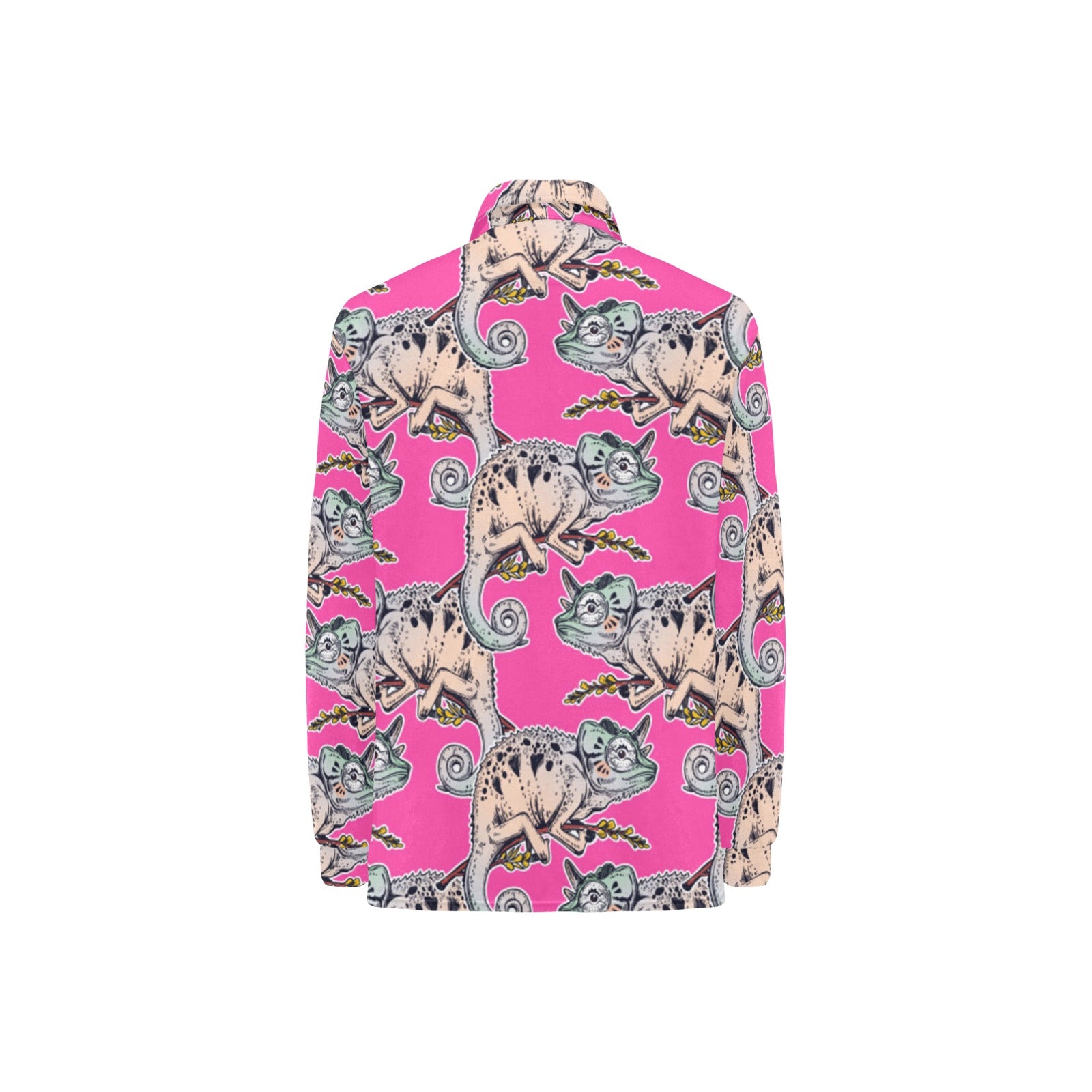Chameleon lizard pattern pink background Women's Long Sleeve Polo Shirt