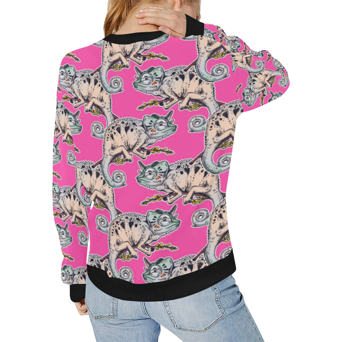 Chameleon lizard pattern pink background Women's Crew Neck Sweatshirt