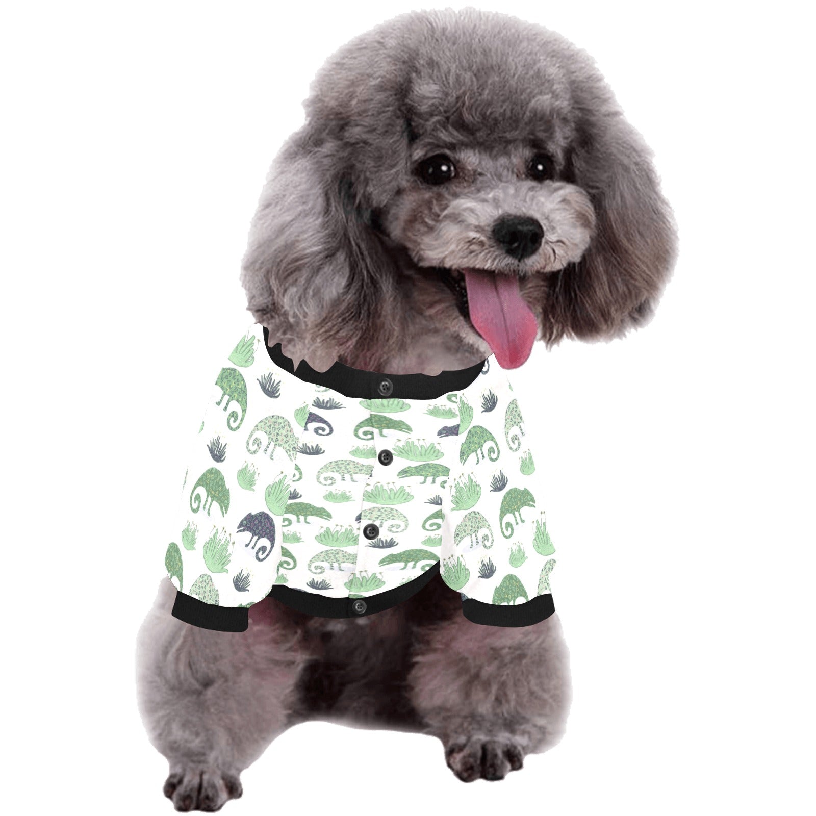 Chameleon lizard succulent plant pattern All Over Print Pet Dog Round Neck Fuzzy Shirt