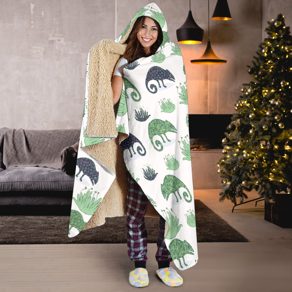 Chameleon lizard succulent plant pattern Hooded Blanket are custom-made-to-order and handcrafted to the highest quality standards.