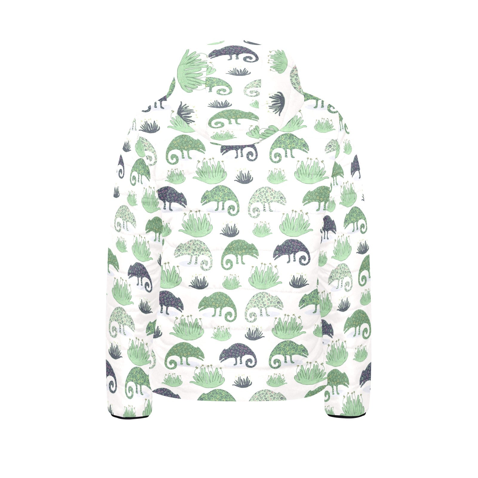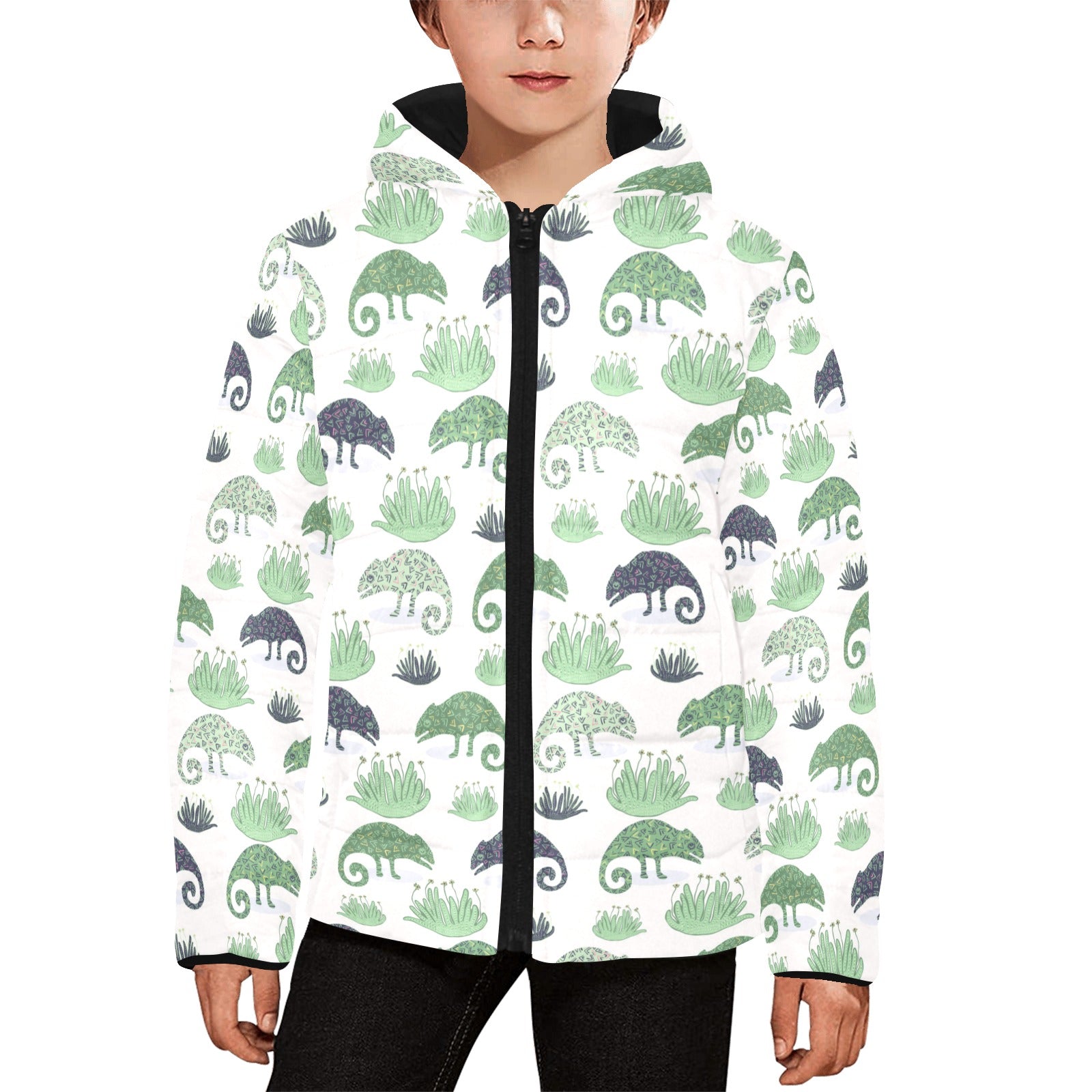 Chameleon lizard succulent plant pattern Kids' Boys' Girls' Padded Hooded Jacket