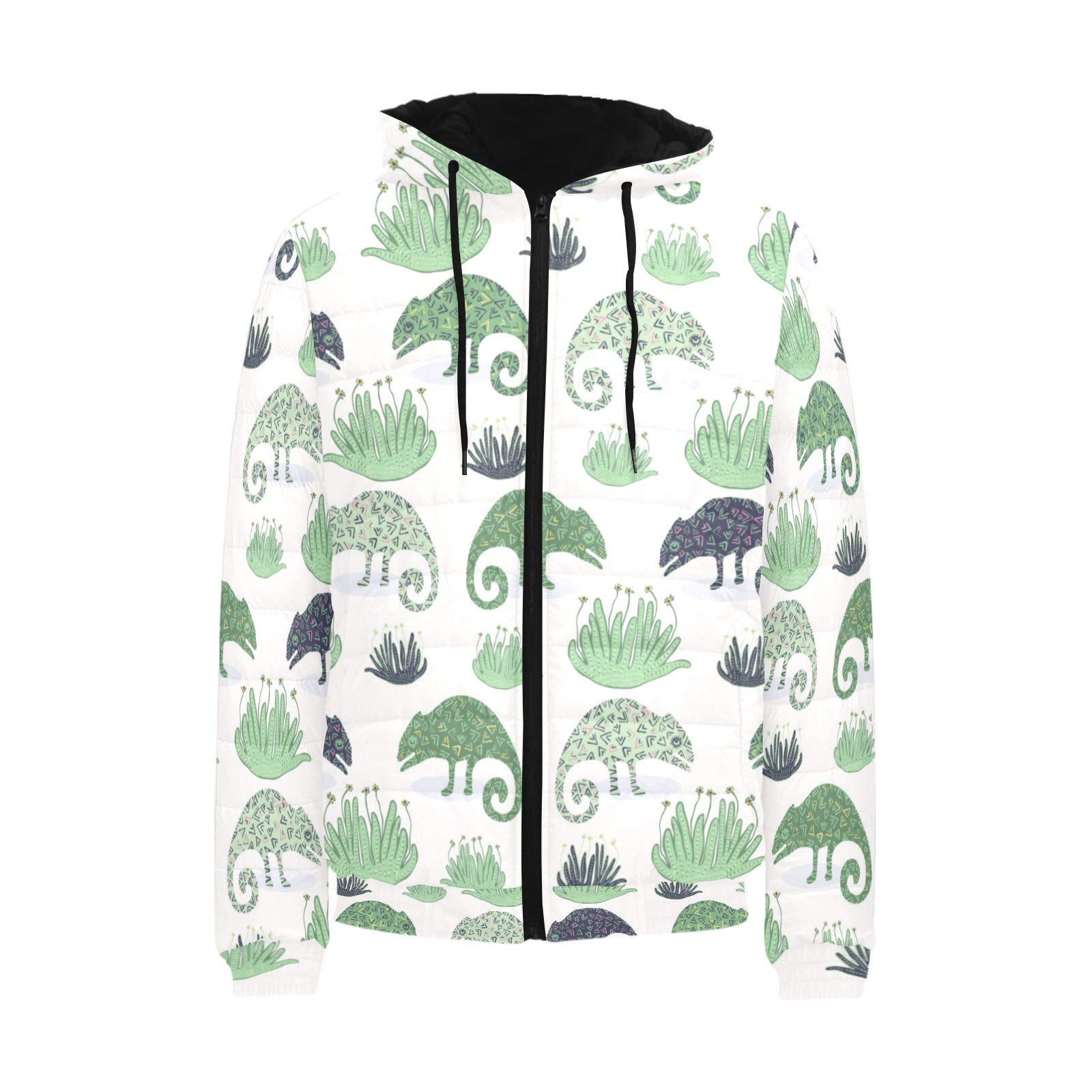Chameleon lizard succulent plant pattern Men's Padded Hooded Jacket