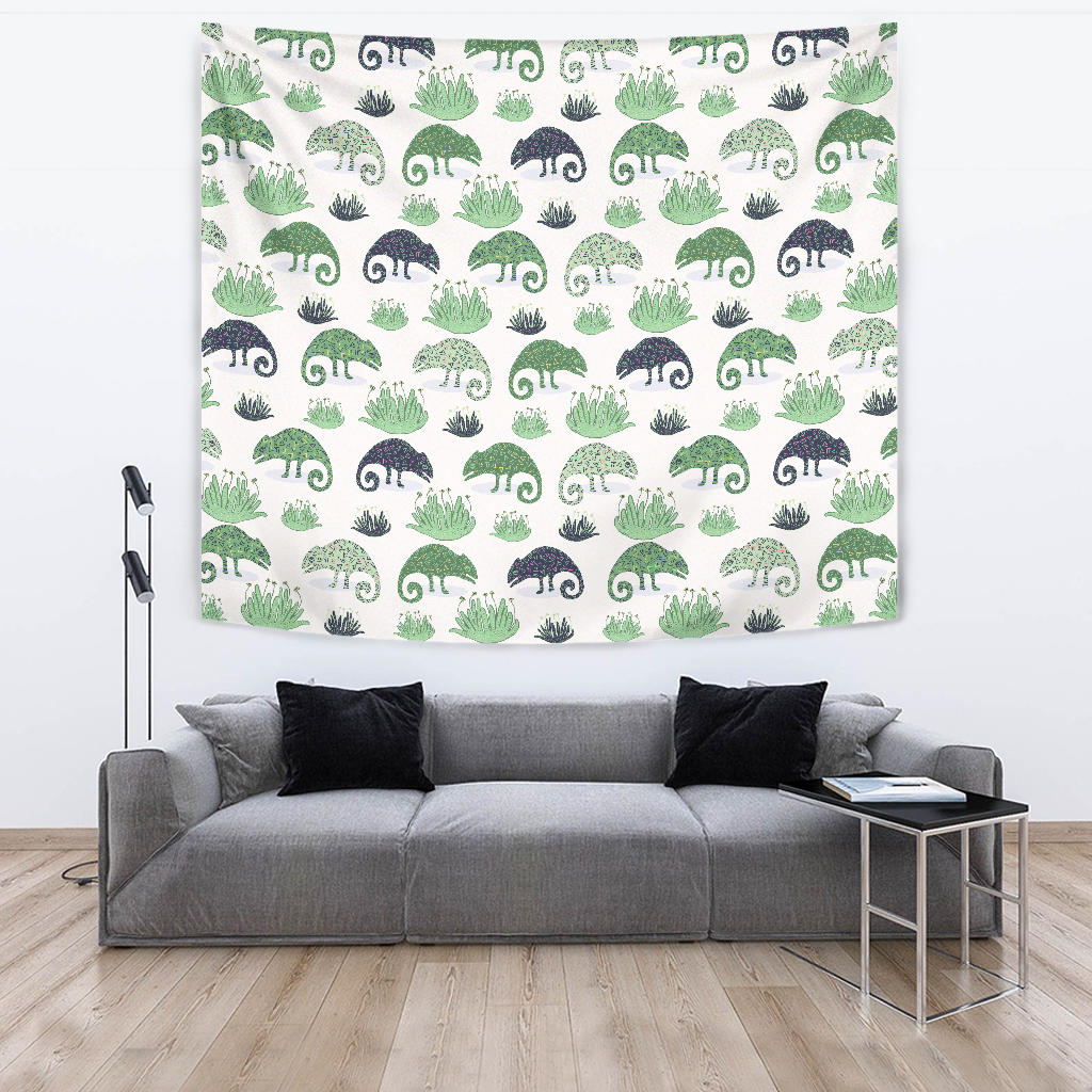 Chameleon Lizard Succulent Plant Pattern Wall Tapestry